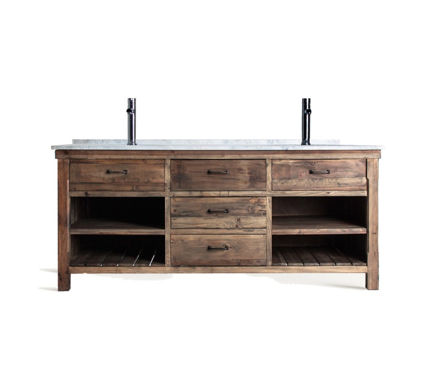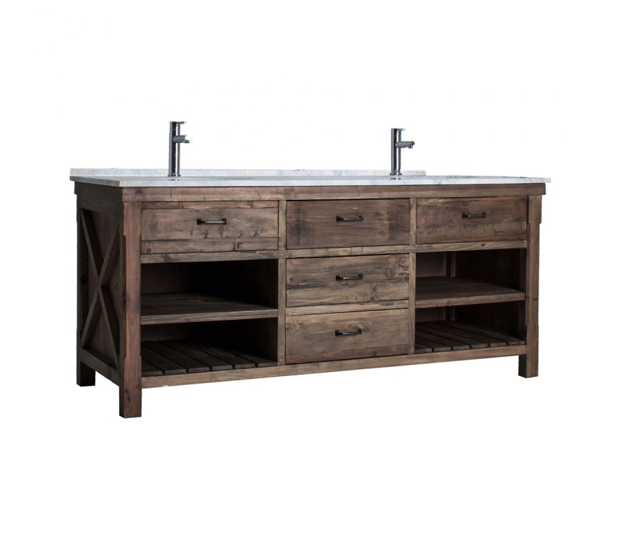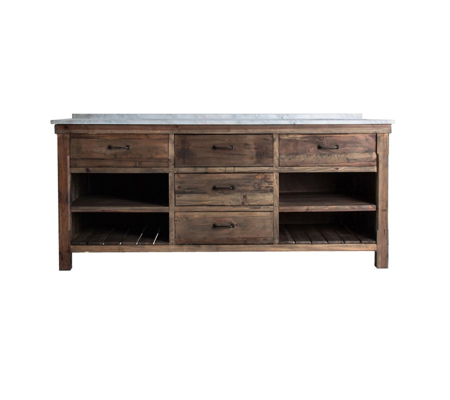 Vidiecka umývadlová skrinka Boneli z masívneho dreva s kamennou vrchnou doskou a s úložným priestorom 160cm