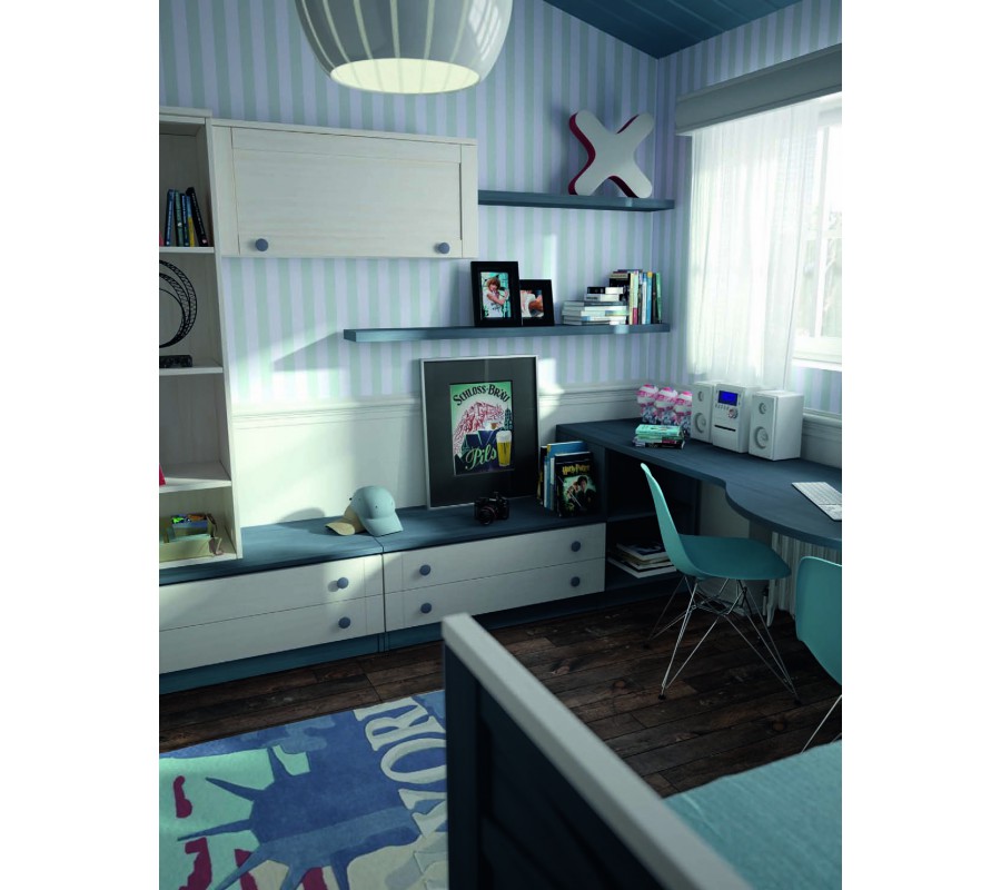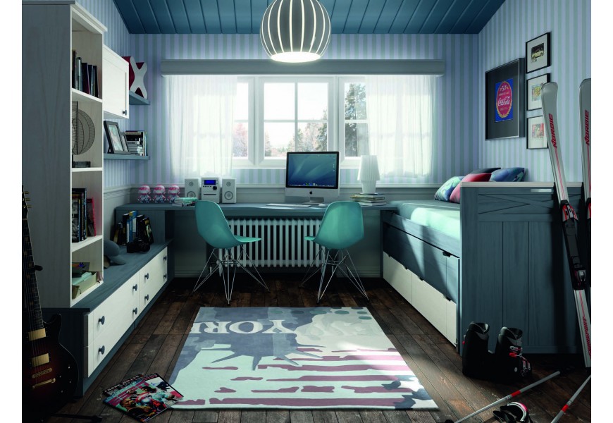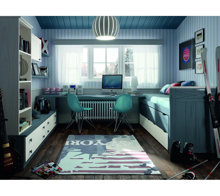 Luxusná detská izba vo farebnej kombinácii Azul Mar / Blanco Decape ponúka vám a vášmu dieťaťu štýlový a nadčasový priestor, ktorého dominantou je masívna, vysoká posteľ doplnená o množstvo praktického odkladacieho priestoru. Španielska firma vyrábajúca tento kvalitný a luxusný nábytok ponúka taktiež možnosť rozmerového či farebného prispôsobenia.
