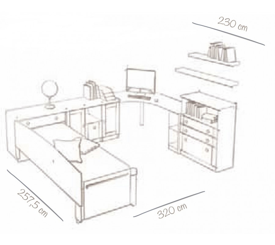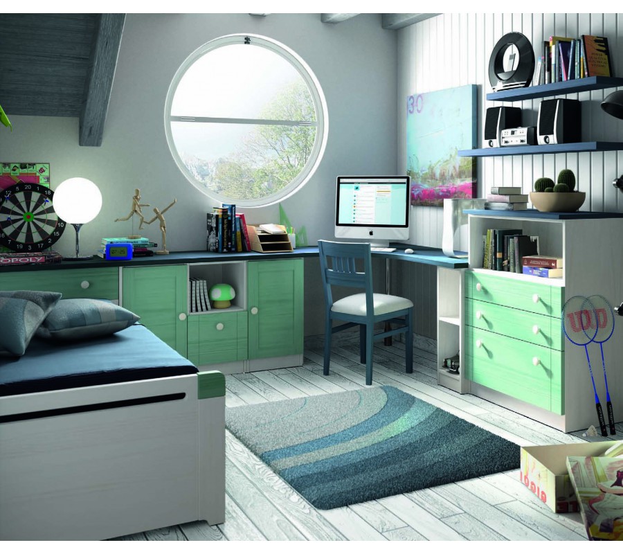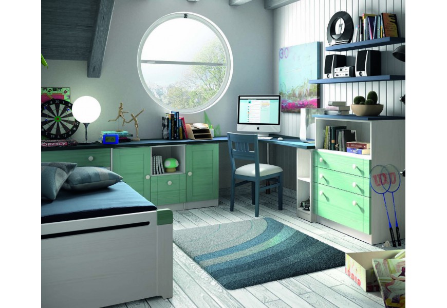 Luxusná detská izba vo farebnej kombinácii lanco Decape / Verde Agua / Azul mar poskytne vášmu dieťaťu množstvo úložného priestoru a zároveň štýlové a príjemné miesto na trávenie svojho času. Túto nadčasovú zostavu luxusného, španielskeho nábytku možno v prípade záujmu farebne či rozmerovo upraviť podľa vášho želania.