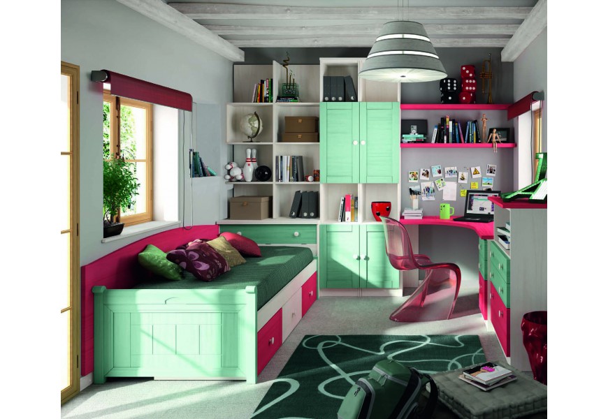 Luxusná detská izba vo farebnej kombinácii Blanco Decape / Verde Agua / Coral vyčarí z vášho interiéru príjemné a veselé miesto, v ktorom bude radosť tráviť čas. Jednotlivé kusy tohto klasického nábytku, ktoré je v prípade zájmu možno rozmerovo či farebne upraviť podľa vášho želania sú vyrobené z kvalitného, masívneho dreva.