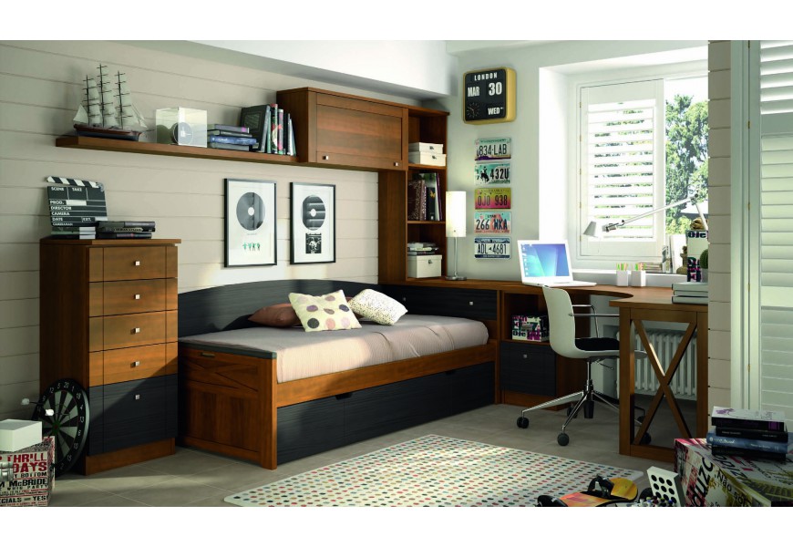 Luxusná študentská izba v prevedení Tabaco / Negro Humo je tým pravým pre nadšencov nadčasových tvarov a farieb. Španielska firma zaoberajúca sa výrobou tohto kvalitného, klasického nábytku z masívneho dreva ponúka v prípade záujmu možnosť výroby na mieru.