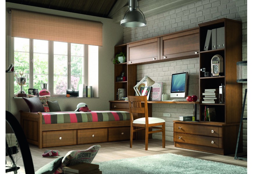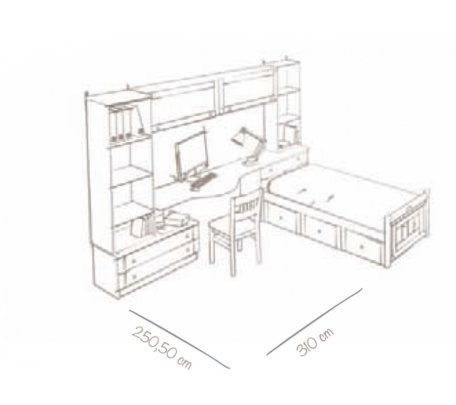 Luxusná študentská izba v odtieni Miel Patinado je tvorená nadčasovými kusmi nábytku vyrobeného z kvalitného, masívneho dreva. Izba vášmu dieťaťu poskytne útulný a príjemný priestor s množstvom praktického odkladacieho priestoru. V prípade vášho záujmu je možné rozmery či farebné prevedenie nábytku upraviť na mieru.