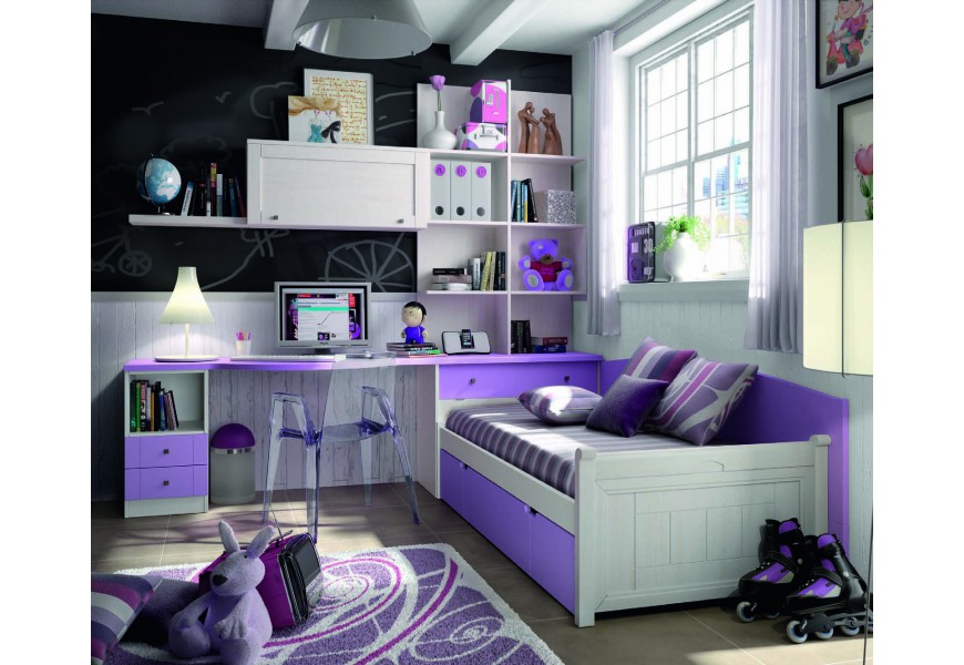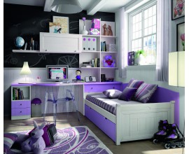 Luxusná detská izba vo farebnej kombinácii Blanco Decape / Lila je ideálnou voľbou pre vytvorenie útulného, dievčenského interiéru. Túto zostavu z kvalitného masívneho dreva vyrába obľúbená španielska firma, ktorá ponúka taktiež možnosť výroby nábytku na mieru.