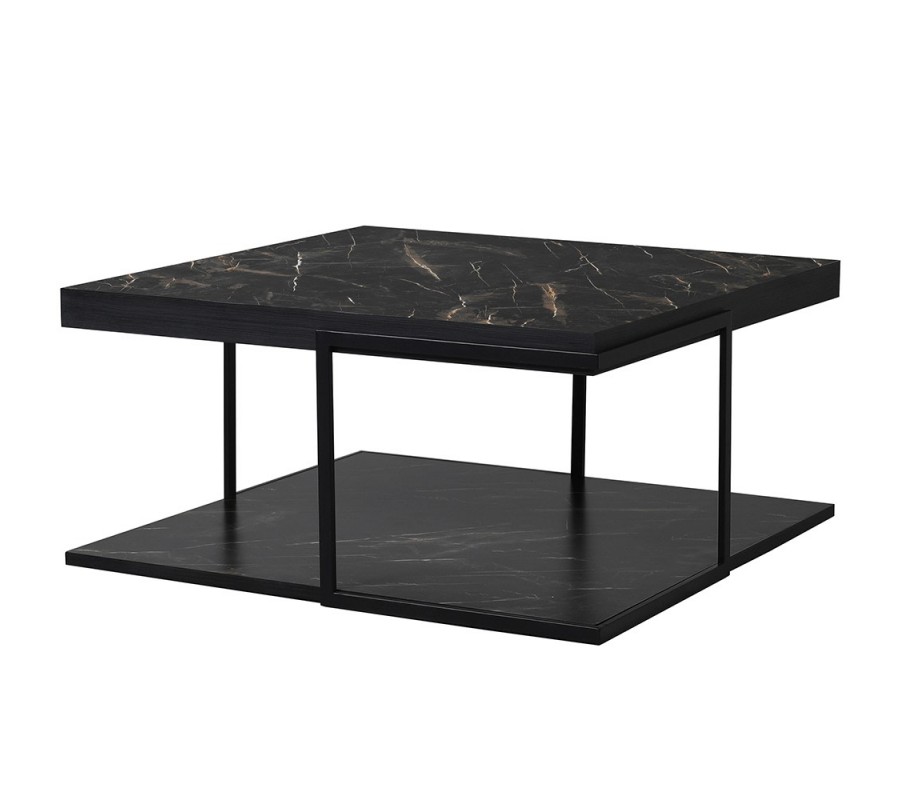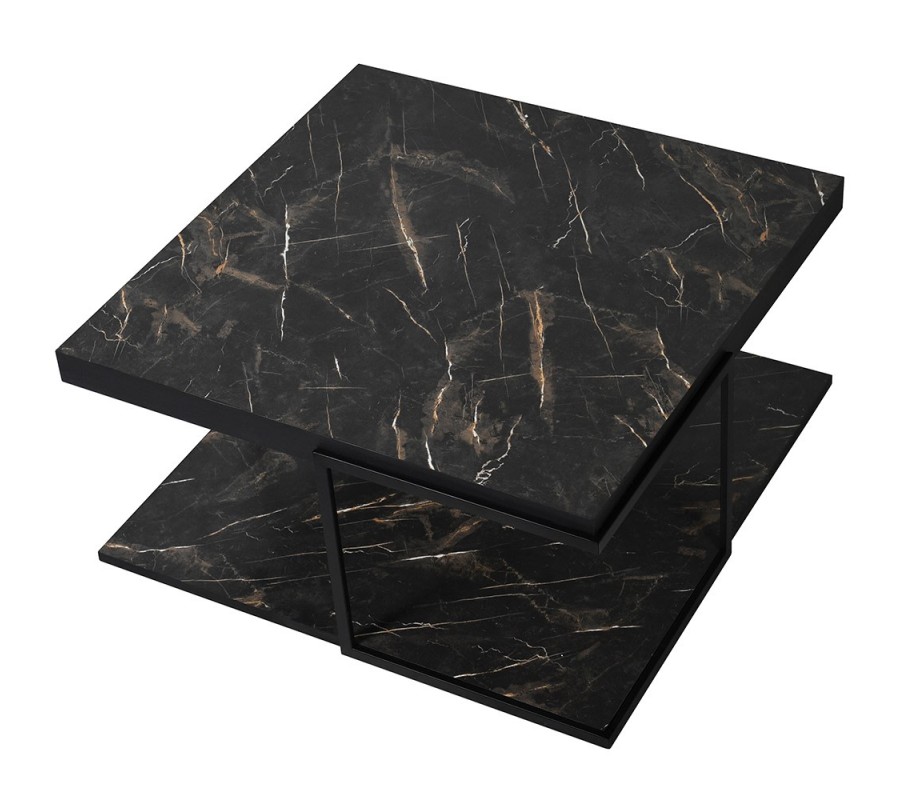 Vytvorte elegantnú a modernú atmosféru vo vašom pracovnom alebo obývacom priestore s naším mramorovým konferenčným stolíkom Diaz štvorcového tvaru v čiernej mramorovéj farbe so svetlou kresbou a štyrmi kovovými čiernymi nožičkami. Tento štýlový stolík je nielen vizuálne atraktívny, ale aj praktický s dodatočným úložným priestorom pre väčšiu funkcionalitu.