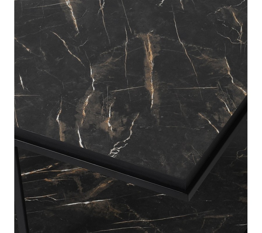 Mramorový konferenčný stolík Diaz štvorcového tvaru v čiernej farbe so štyrmi kovovými čiernymi nožičkami 81 cm