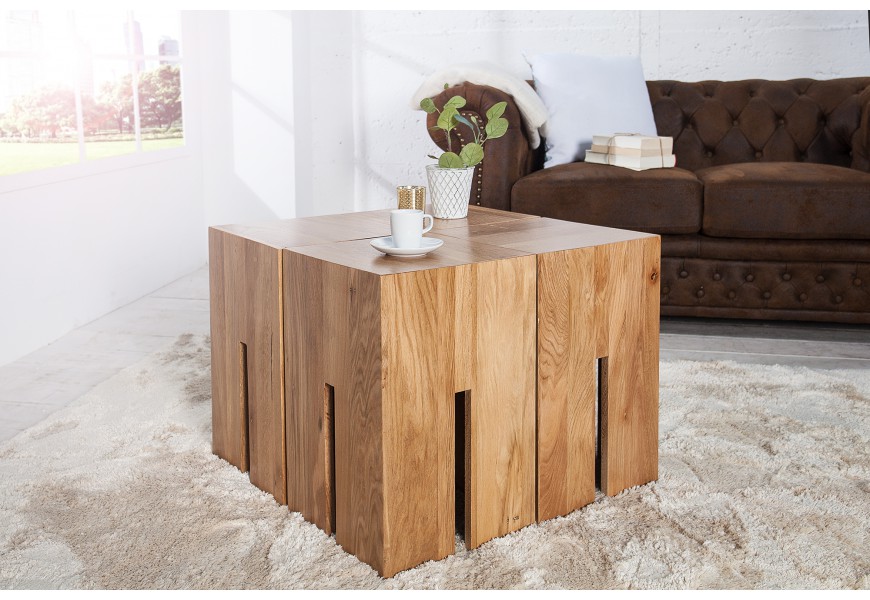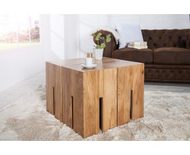 Štýlový masívny štvorcový hnedý konferenčný stolík Castle s výraznou štruktúrou dreva 45 cm