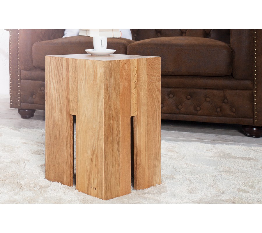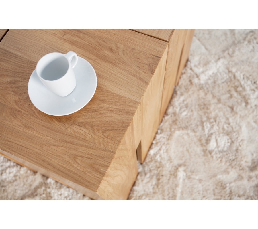 Stolík Castle je výrazným kúskom s etno a moderným charakterom, ktorý vyniká svojou masívnou konštrukciou a originálnym dizajnom. Vyrobený je z kvalitného masívneho dubového dreva, ktoré je známe svojou trvácnosťou a bohatou prirodzenou kresbou. Hnedý odtieň s teplým podtónom ešte viac zvýrazňuje štruktúru dreva a podčiarkuje jeho autentickosť.