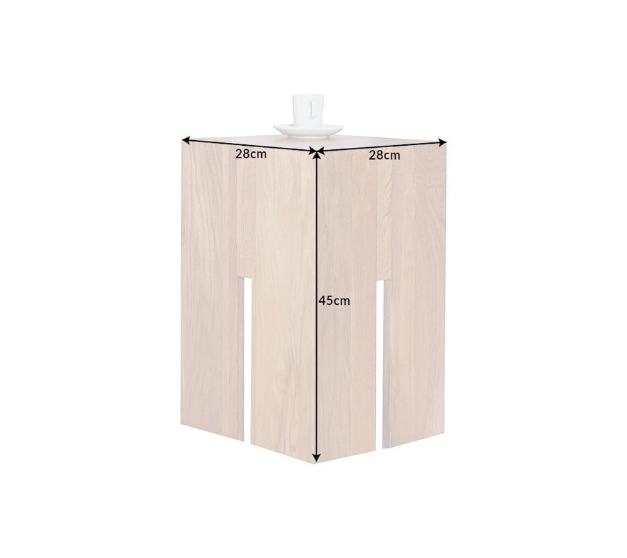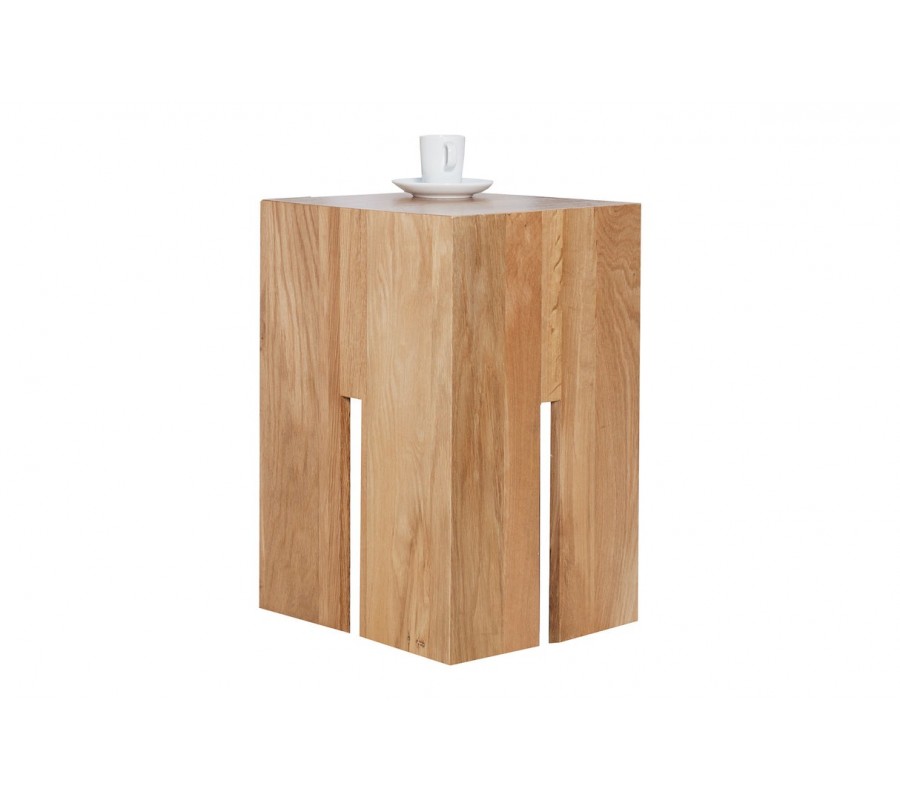 Štvorcový tvar a výrezy v spodnej časti nožičiek vytvárajú zaujímavú hru geometrie a vzdušnosti, ktorá dodáva stolíku moderný umelecký ráz. Povrch je hladko opracovaný a pôsobí robustne aj vizuálne čisto.