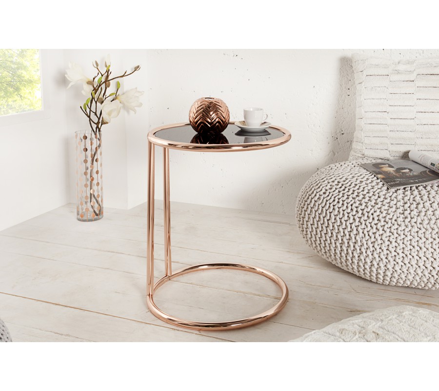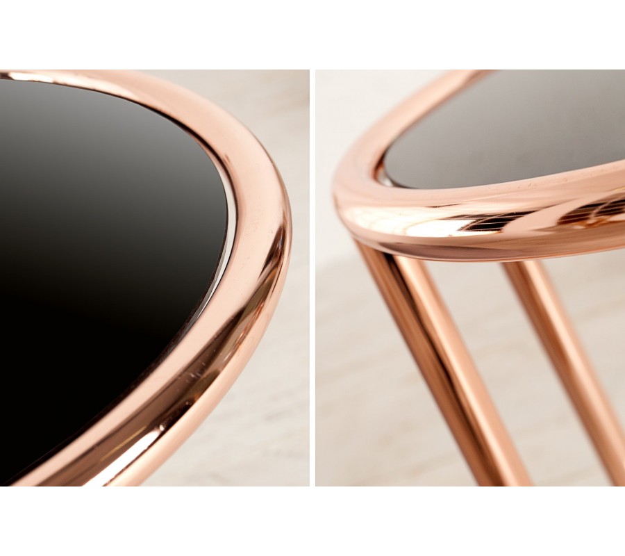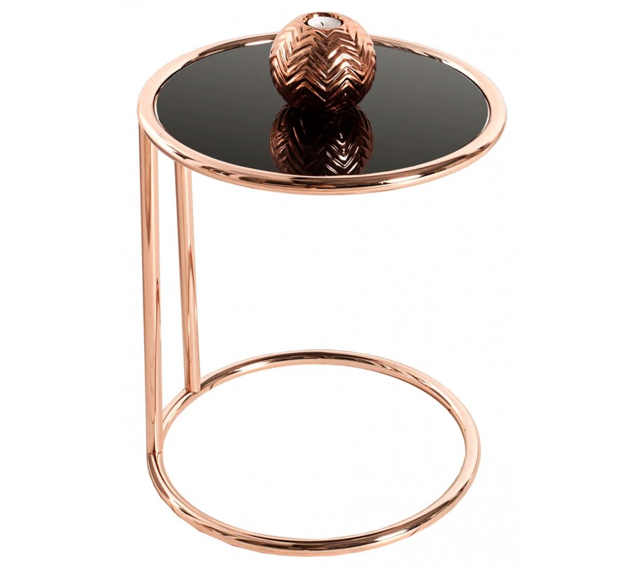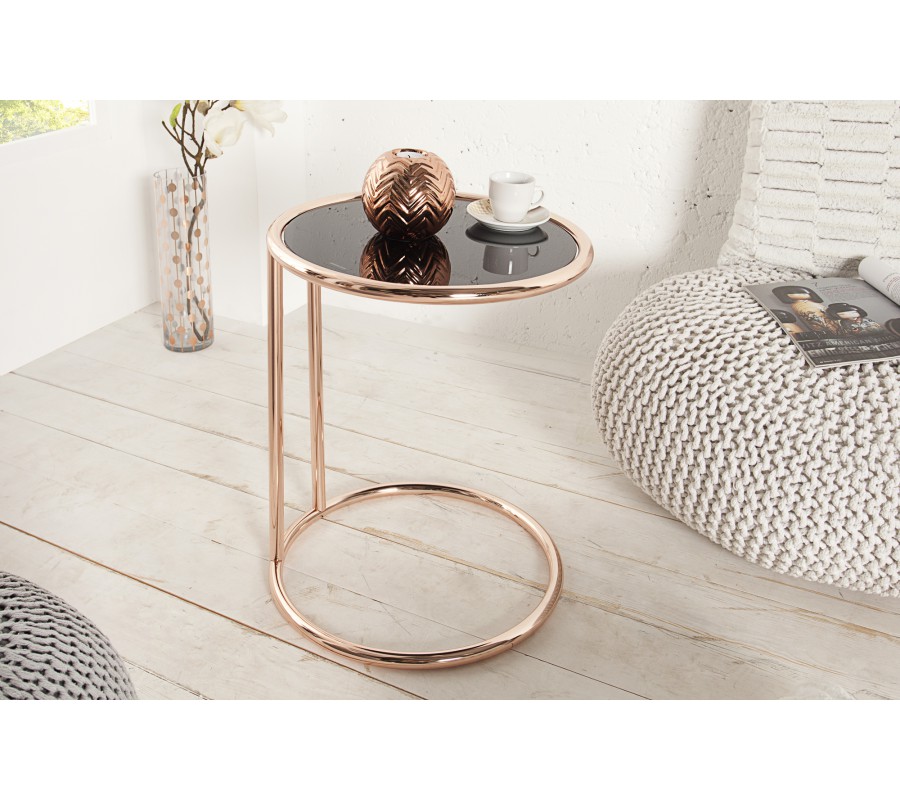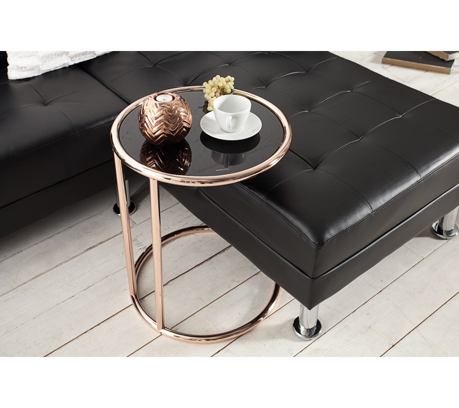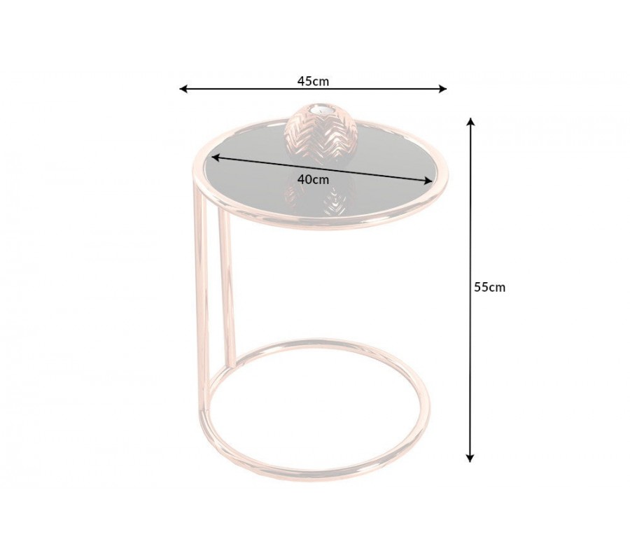 Luxusný jedinečný príručný stolík Art Deco vyjadruje hravé kúzlo. Moderný vzhľad úmyselne porušuje tradičné konvencie. Príručný stolík Art Deco je vybavený pevnou čiernou sklenenou doskou, čo dodáva stolíku dodatočnú stabilitu. Farebná kombinácia zdôrazňuje retro faktor tohto kusu nábytku. Rozmery: Výška: 55cm Ødosky: 40cm Hrúbka stolovej dosky:5mm Príručný stolík je vyrobený z kvalitných materiálov ako sú kov a bezpečnostné (tvrdené) sklo v čiernej farbe.