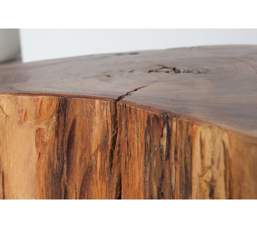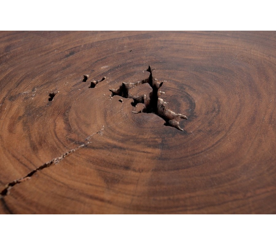 Jedinečný etno okrúhly nepravidelný hnedý masívny príručný stolík Pure z akáciového dreva 50 cm