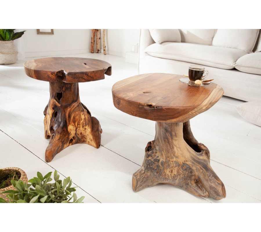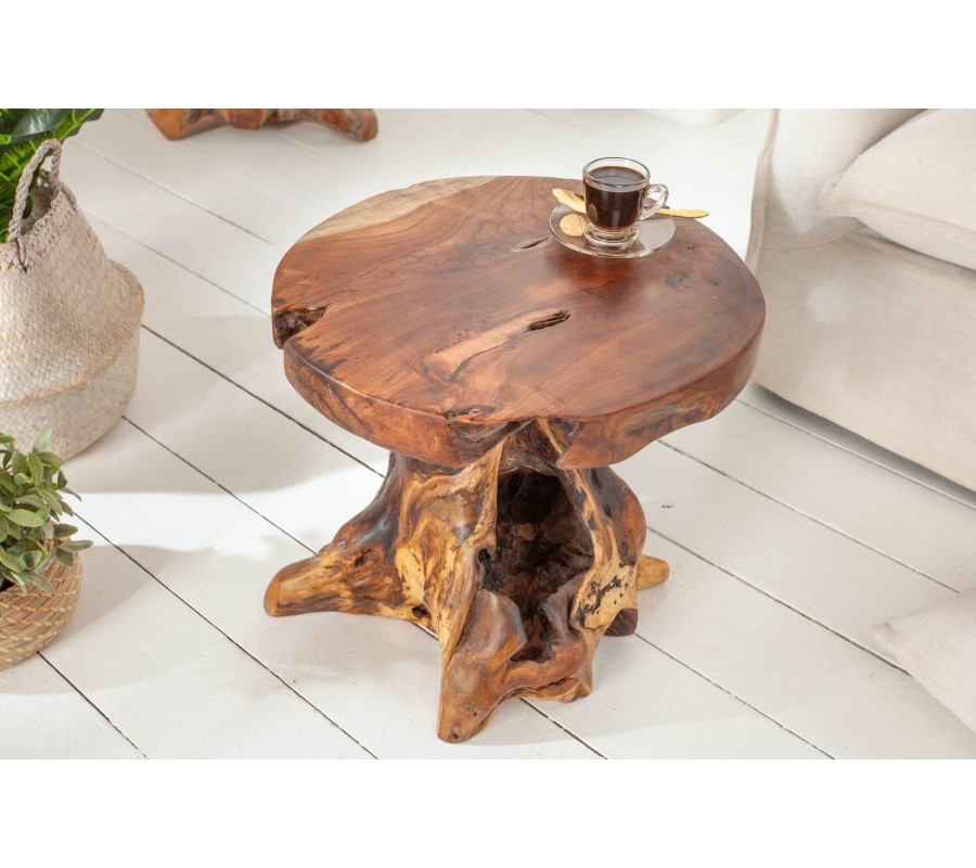 Dizajnový odkladací stolík Root vyrobený z masívneho teakového dreva ocenia hlavne milovníci jednoduchého a naturálneho štýlu. Vďaka prírodnému drevu a ručnej výrobe si každý stolík zachováva jedinečný a neopakovateľný vzhľad.