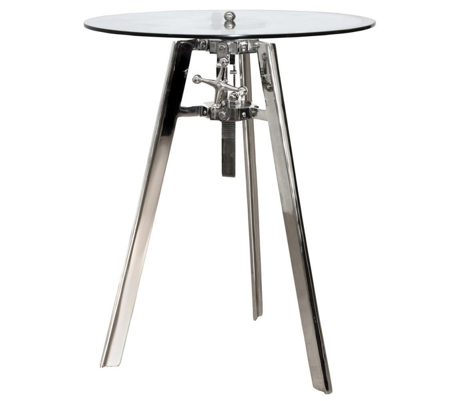 Štýlový nastaviteľný príručný stolík Rendy s chrómovým povrchom a kruhovou sklenenou doskou 74cm