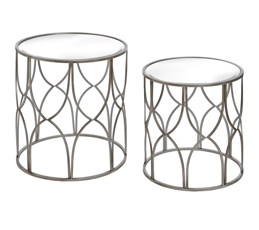 Luxusné príručné stolíky okrúhleho tvaru v Art-deco štýle sa krásne hodia do moderných interiérov. Kombinácia kovových rámov a sklenených dosiek je typickým znakom luxusu a elegancie. Rozmery nižšie uvedené sú väčšieho stolíka.