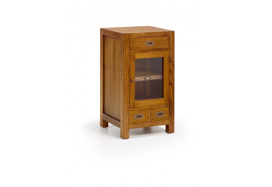 Štýlový príručný stolík z našej kolekcie koloniálneho nábytku Star je kúskom vhodným do klasicky, ale i modernejšie ladených obývačiek. Zapadne kamkoľvek najmä vďaka svojmu jednoduchému dizajnu a klasickému vzhľadu. Stolík je vyrobený z masívneho dreva mindi a nesie sa v hnedej farbe, pričom povrchová úprava necháva vyniknúť jeho prirodzenú kresbu. Disponuje tromi praktickými zásuvkami a dvomi poličkami so sklenenými dvierkami. Vďaka univerzálnej farebnosti príručný stolík Star poľahky zapadne aj do pestrejšie ladených interiérov a dá sa skvelo doladiť kovovými doplnkami.