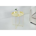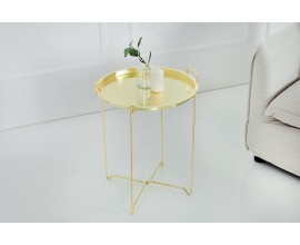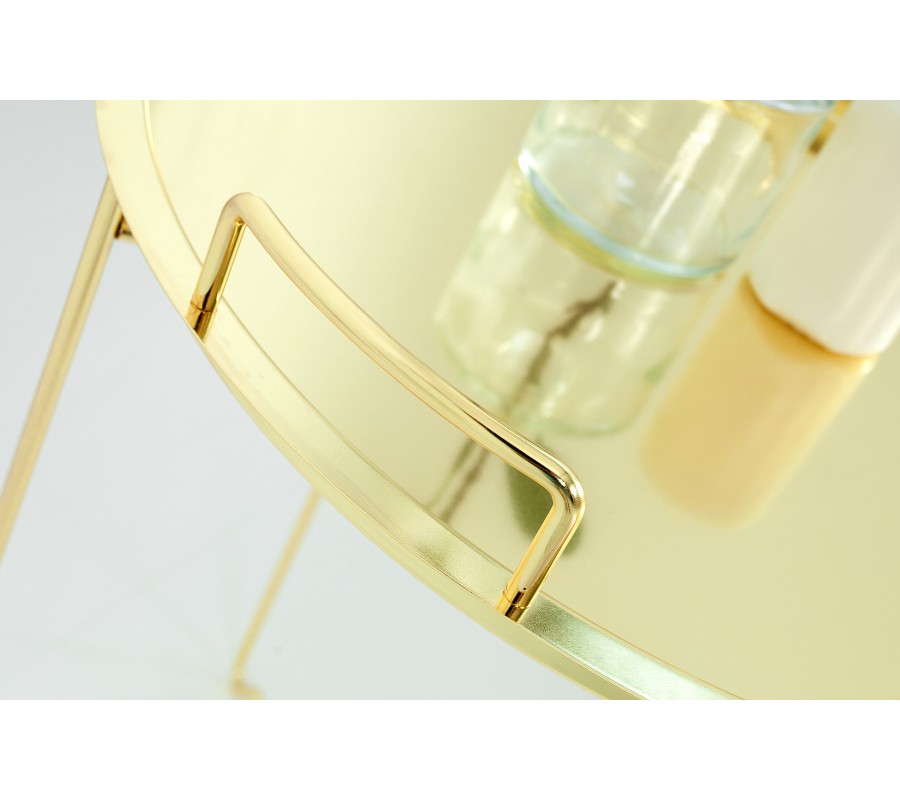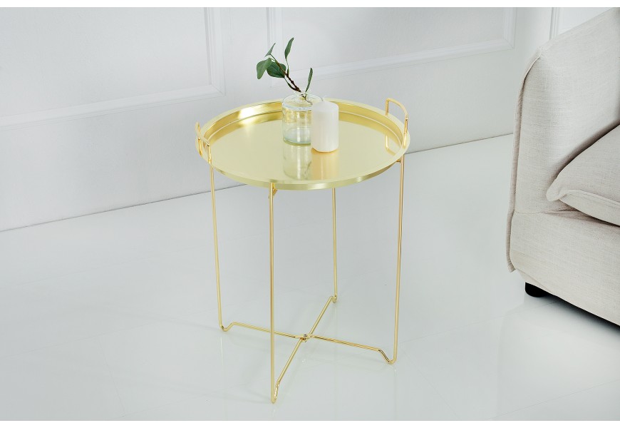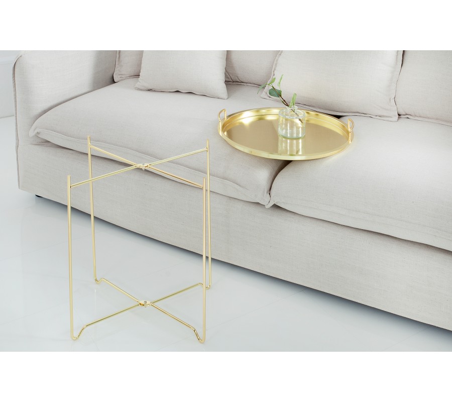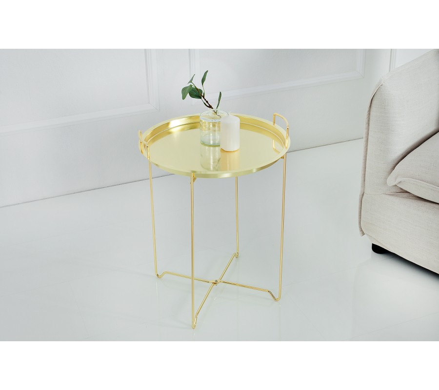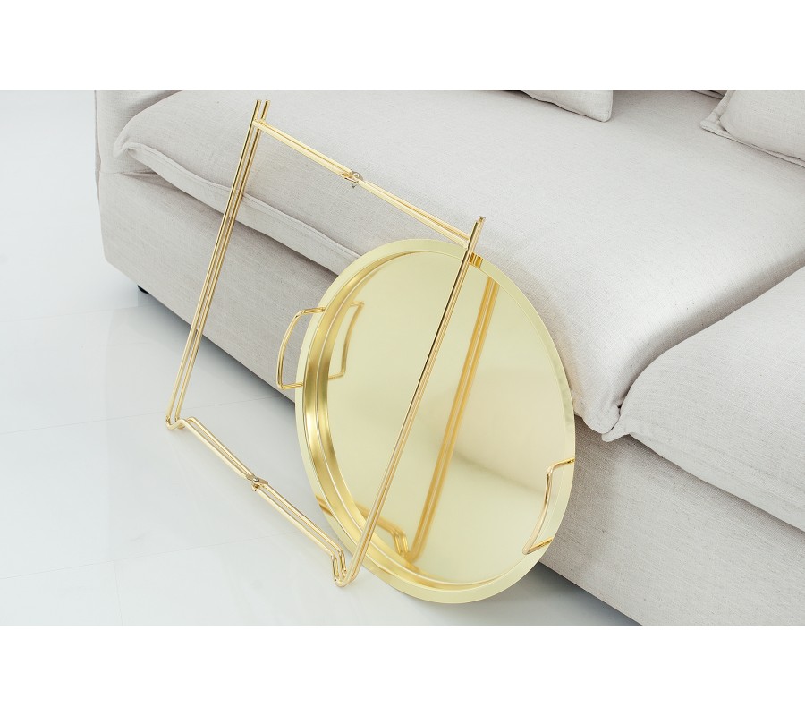 Dizajnový odkladací stolík Marrakesh v zlatom prevedení bude dokonalým doplnkom a zároveň praktickým pomocníkom každej moderne zariadenej domácnosti. Jednoduchý, decentný podstavec nesie okrúhlu dosku s praktickými úchytkami, ktorú je možno oddeliť a použiť ako samostatný servírovací podnos pre vás a vaše návštevy. Podstavec stolíka je možno zložiť. Priemer vrchnej dosky stolíka je 41,5cm.