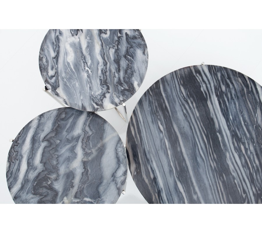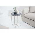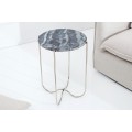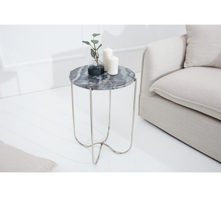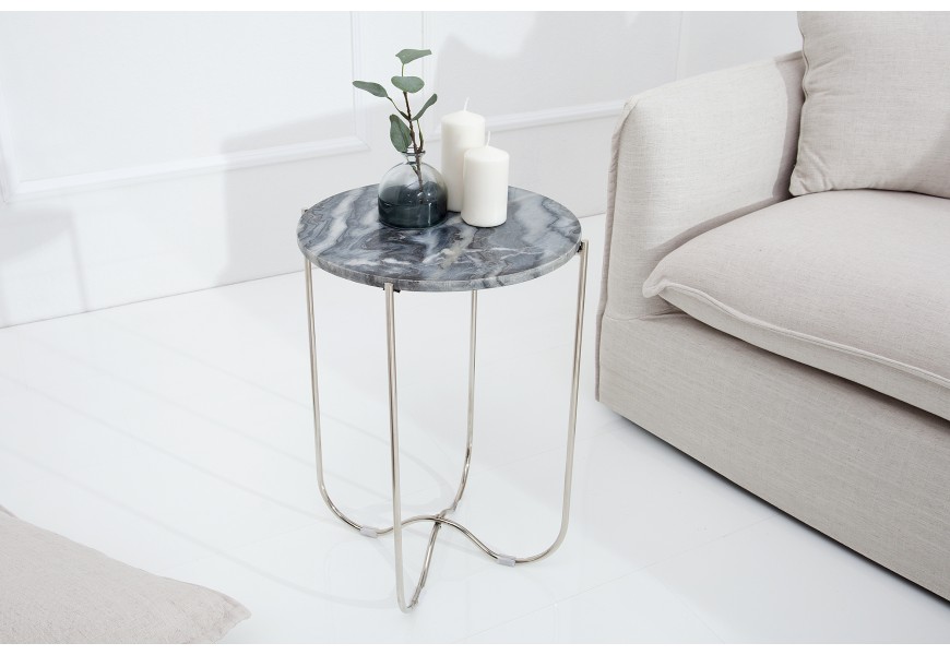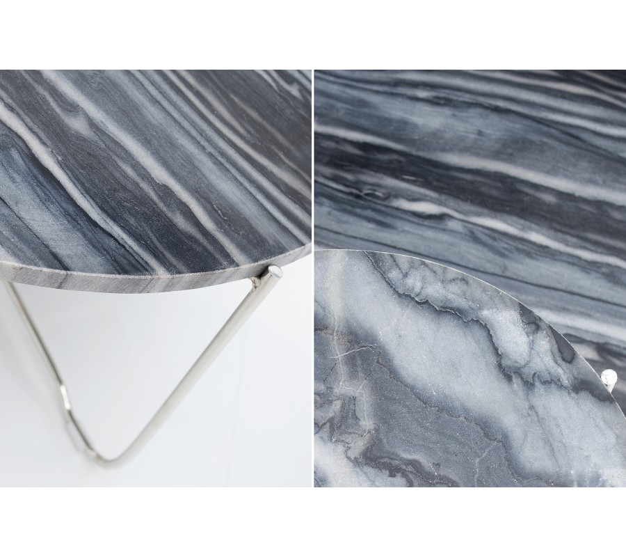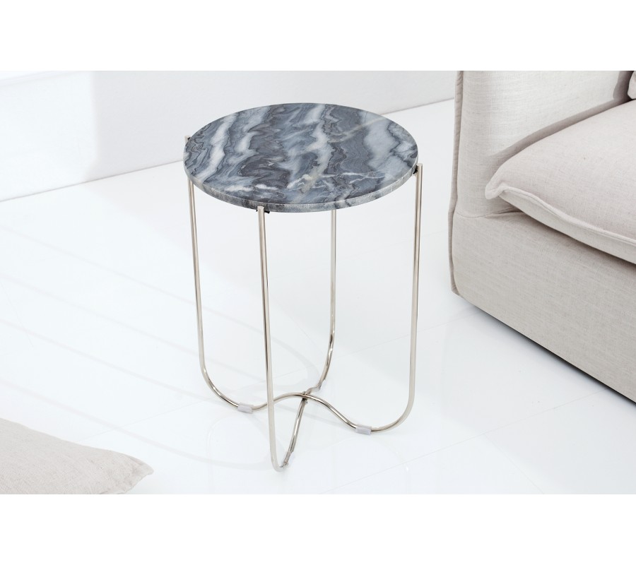 Dizajnový mramorový odkladací stolík z kolekcie Jaspe je krásnym a jedinečným doplnkom interiéru, ktorý ocení každý fanúšik luxusných materiálov a čistého dizajnu. Vo vašej obývačke či spálni ho zaručene nikto neprehliadne. Jednoduché a štíhle kovové nohy v striebornom farebnom prevedení nesú nádhernú, 15mm hrubú povrchovú dosku, ktorá je ručne spracovaná z ušľachtilého mramoru. Povrch každého kúsku sa tak môže mierne odlišovať. Stolík bude ideálnou voľbou najmä do moderne zariadených priestorov ladených v jemných farebných tónoch, ktorým zároveň dodá nádych luxusu.