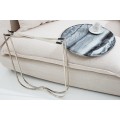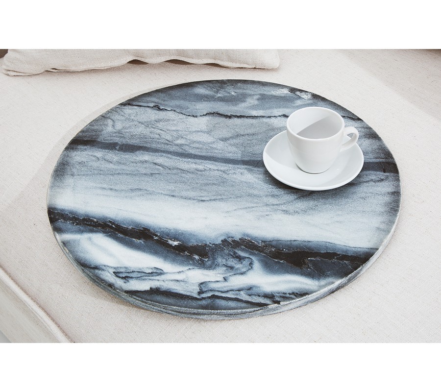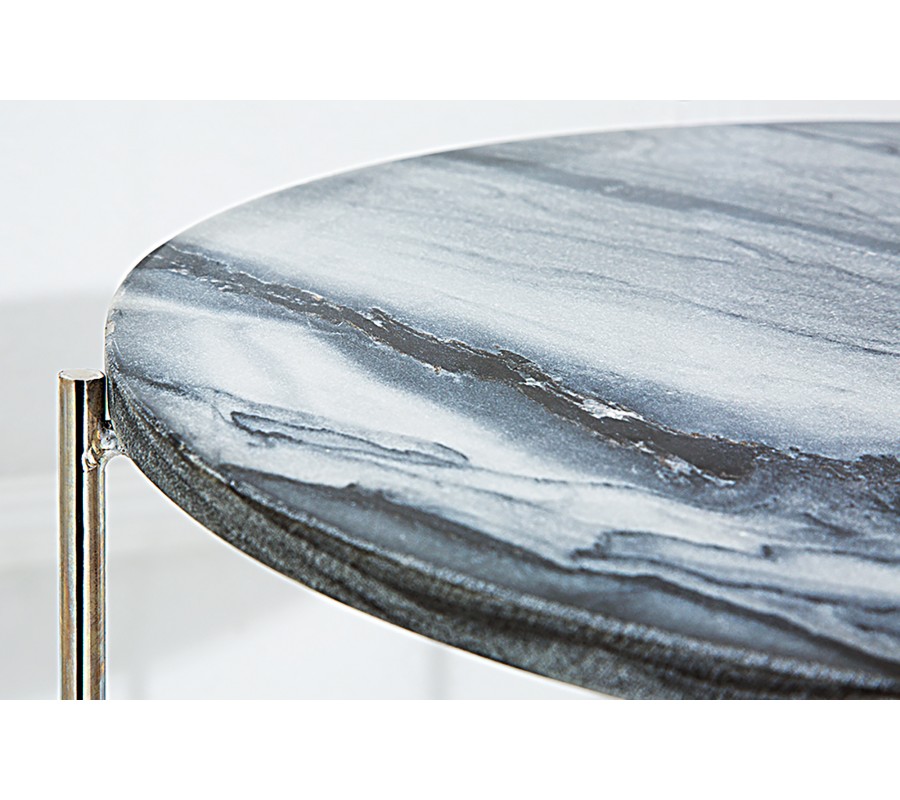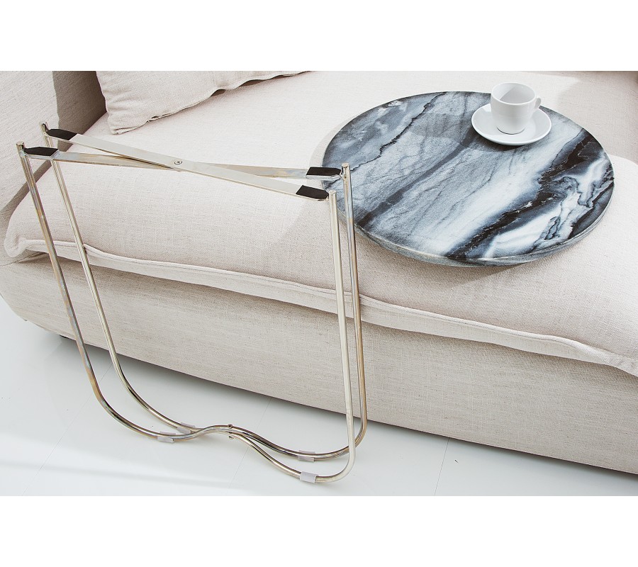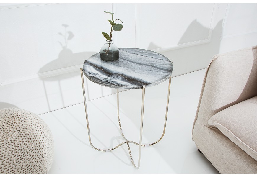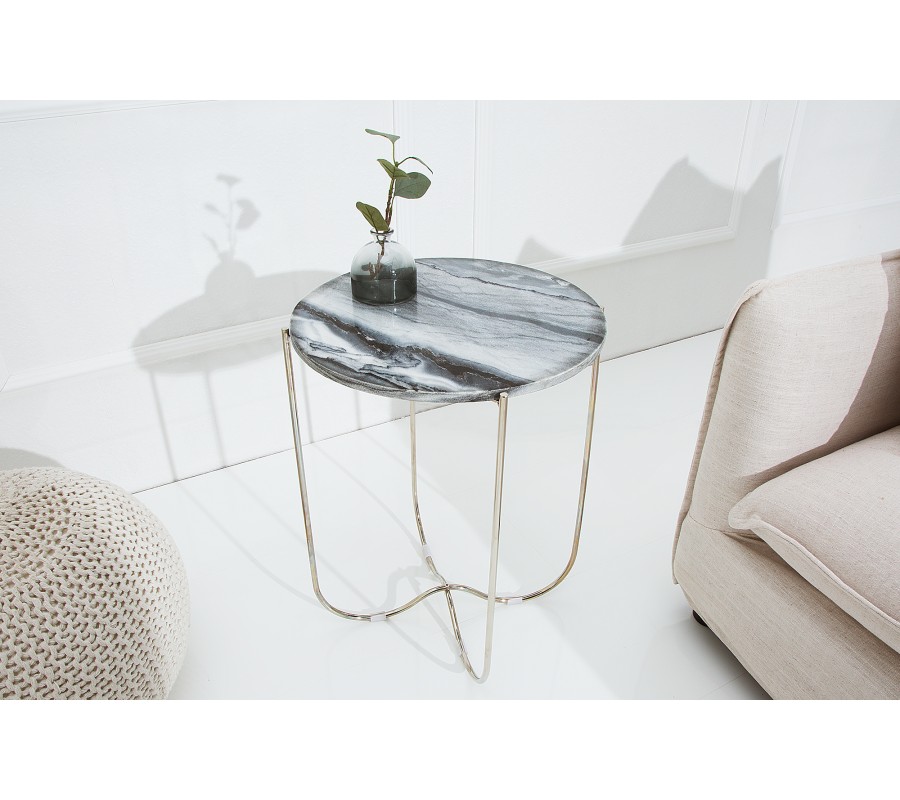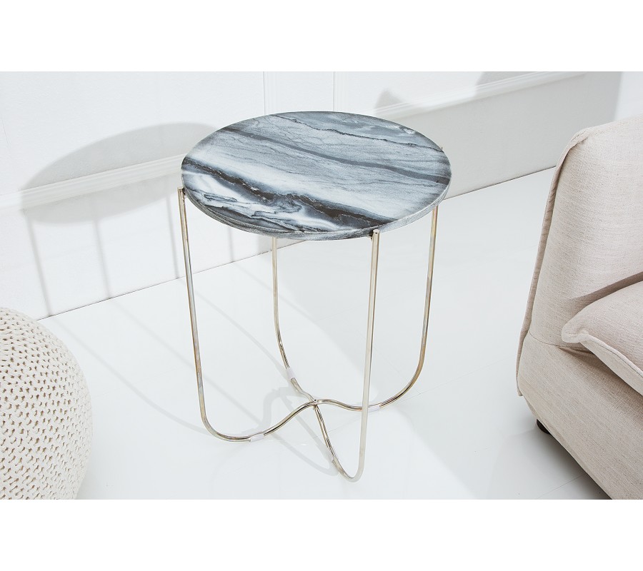 Dizajnový stolík Jaspe je štýlový kúsok s moderným dizajnom, ktorý zapadne do akéhokoľvek interiéru. Mramorová vrchná doska je ručne robená a môže byť použitá ako podnos. Každá doska je unikátna, preto dostanete originálny stolík. Rám stolíka je kovový v striebornej farbe. Na spodnej časti sa nachádzaju protišmykové podlžky, aby sa zamedzilo posúvaniu a poškrabaniu podlahy. Stolík prináša do interiéru honosný a kvalitný dizajn, ktorý ocení každý milovník výnimočných kúskov.