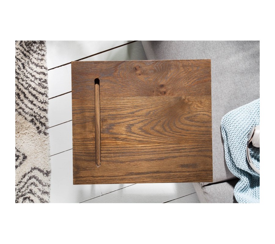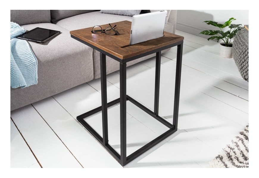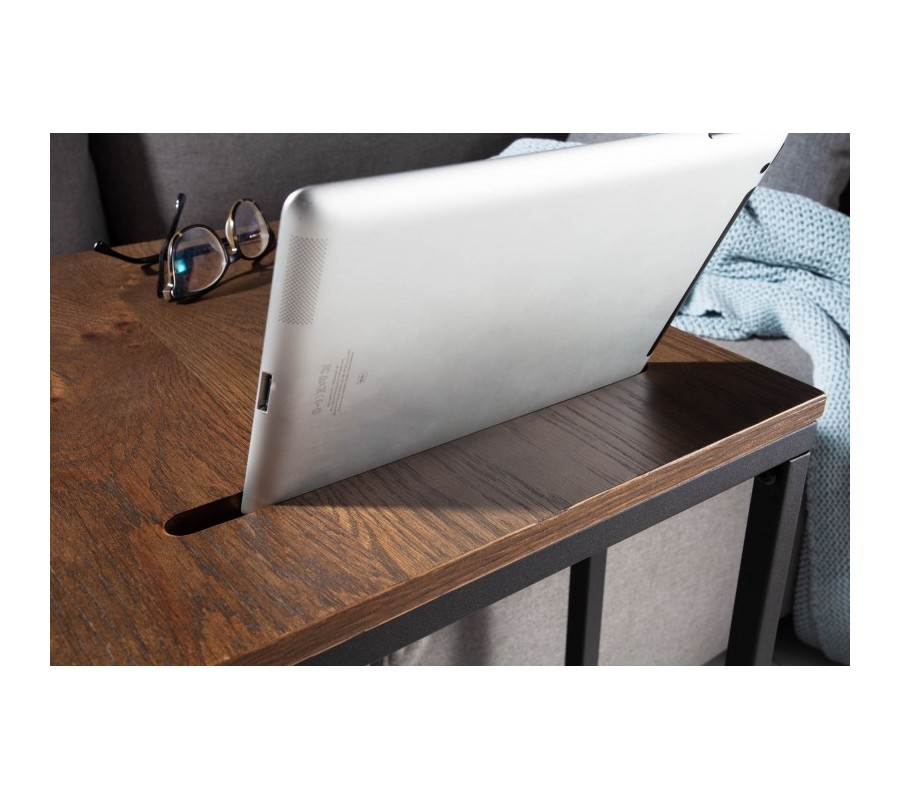 Dizajnový príručný stolík Elements je šikovným spoločníkom do vašej obývačky. Štýlové a moderné prevedenie vás zaujme svojou jednoduchosťou a kombináciou materiálov. Povrchová doska je vyrobená z MDF a drevenej dyhy a na jej povrchu možno vidieť krásnu kresbu dreva, ktorá do vášho interiéru vnesie nádych prírody. Prírodný materiál je doplnený o kovovú konštrukciu v čiernej farbe, ktorá stolíku dodáva industriálny vzhľad. Stolík Elements taktiež disponuje praktickým prvkom slúžiacim ako držiak na tablet, čo vám uľahčí a spríjemní vašu prácu. Skvelo vynikne v svetlejších priestoroch v kombinácii s nábytkom v industriálnom štýle. Odporúčame taktiež ďalšie kúsky z našej dizajnovej kolekcie Elements.