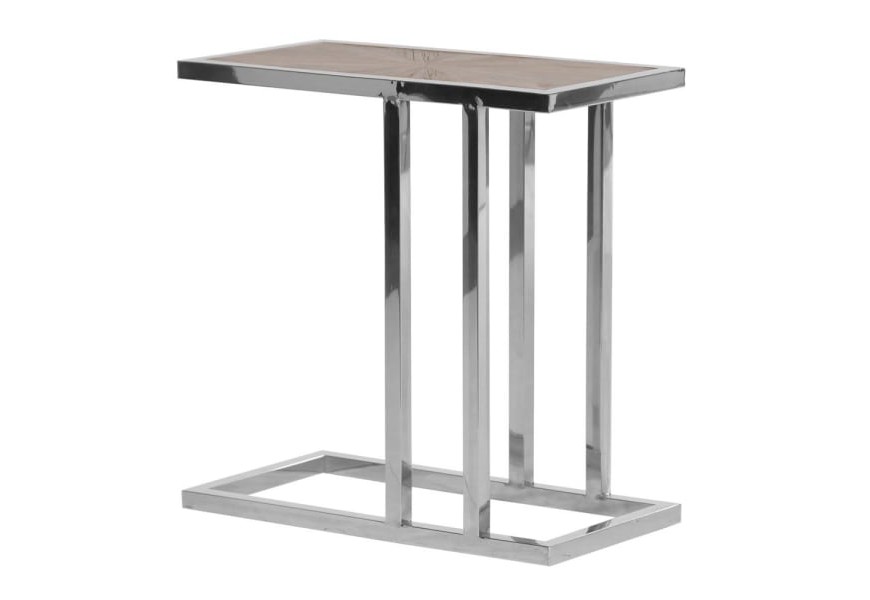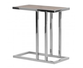Moderný príručný stolík Adelie s hnedou drevenou povrchovou doskou a chrómovou kovovou konštrukciou 60cm