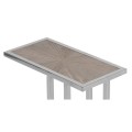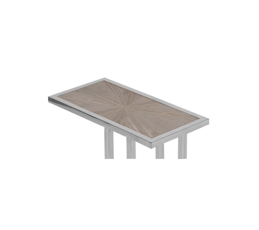 Elegantný a nadčasový príručný stolík Adelie je dizajnovým kúskom, ktorý vynikne v luxusných halách, predsieňach, hotelových priestoroch či obývačkách vašich moderných domovov. Zaujme predovšetkým milovníkov minimalistického dizajnu, a to vďaka svojej jednoduchej no zároveň elegantnej konštrukcii z masívneho brestového dreva a kovu. Povrchová doska je výnimočná vďaka zaujímavému vzoru, ktorý tvoria jednotlivé časti dreva usporiadané do hviezdicového tvaru, pričom vyniká jeho prirodzená kresba. Svetlohnedá farba v kombinácii s chladnými kovovými tónmi vytvára nadčasový vzdušný vzhľad, ktorý vynikne v každom moderne ladenom priestore. Odporúčame stolík Adelie kombinovať s doplnkami z kovu a skla.
