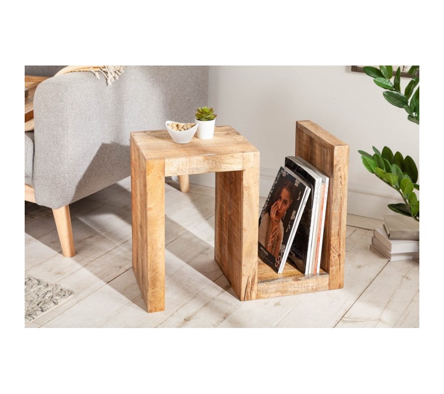 Industriálny príručný stolík Mango natur z masívneho dreva 60cm
