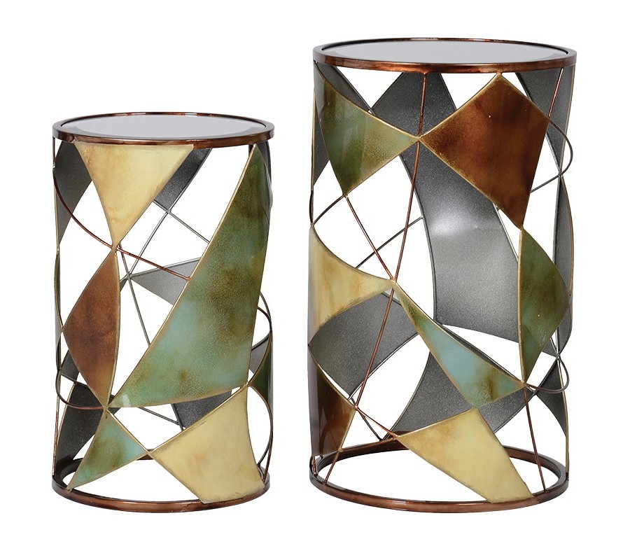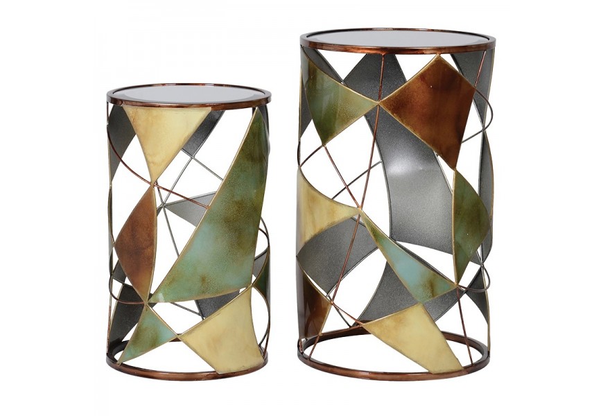Set luxusných a jedninečných príručných stolíkov Satordi II je veľmi vkusným doplnkom modernej domácnosti. Tieto dva prepracované kúsky budú Váš interiér vdačne zdobiť svojou krásou, ktorú im prepožičiava najmä kombinácia medeného kovu a farebných geometrických plôch, ktoré však namiesto strohosti ponúkajú oku na pohľad jemné a plynulé línie. Tieto vkusné príručné stolíky dokonale zapadnú d omiestností s minimalistickou farebnosťopu obohatených o farby im vlastné.