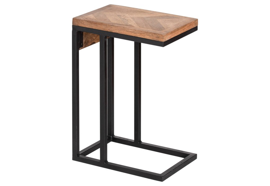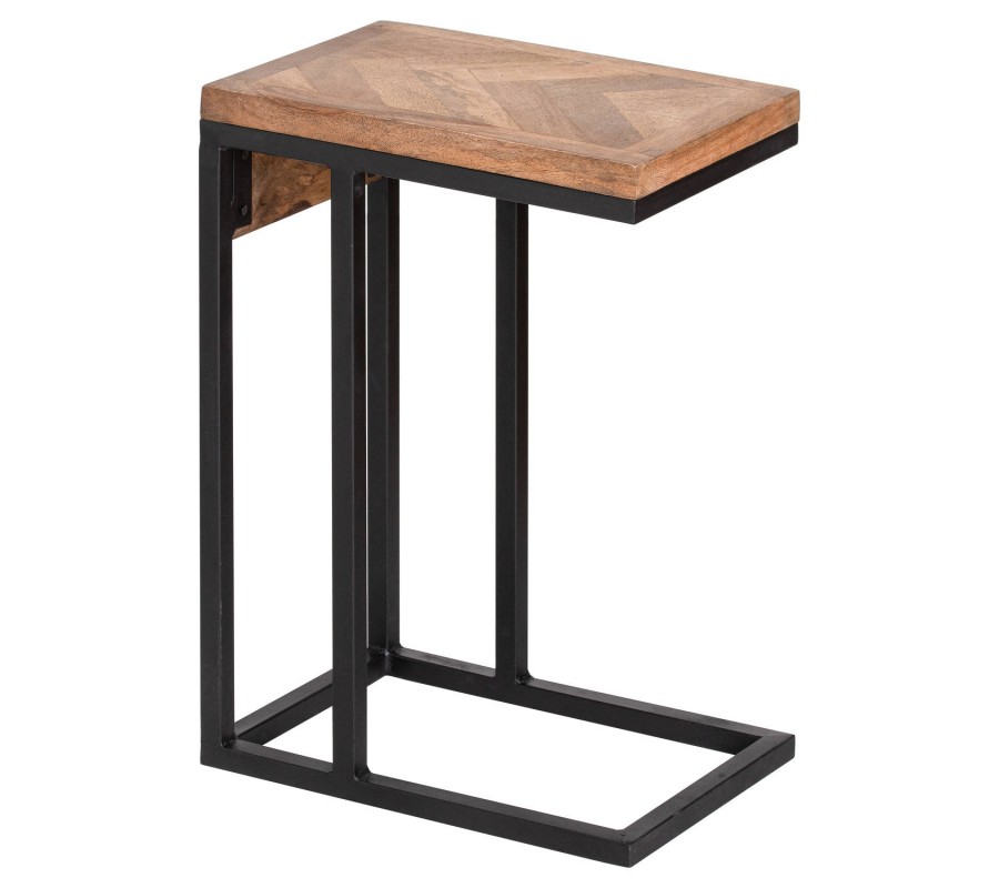 Dizajnový a vkusný príručný stolík Nyakim je pútavý najmä vďaka svojej nezvyklej konštrukcii, nohy tvorené chladným no minimalistickým kovom typickým pre industriálny štýl sú doplnené povrchovou doskou z masívneho mangového dreva vo svojich prirodzených farebných odtieňoch. Hnedá povrchová doska upúta najmä naturálnou kresbou mangového dreva skladanou do jednoduchého vzoru dizajnovým smerovaním dyhy. Príručný stolík Nyakim zapadne najmä do vkusných interiérov s nádychom industriálneho či škandinávskeho štýlu.