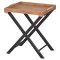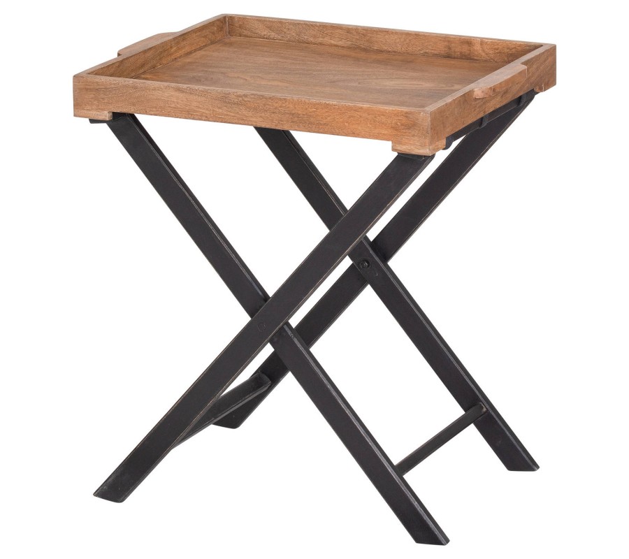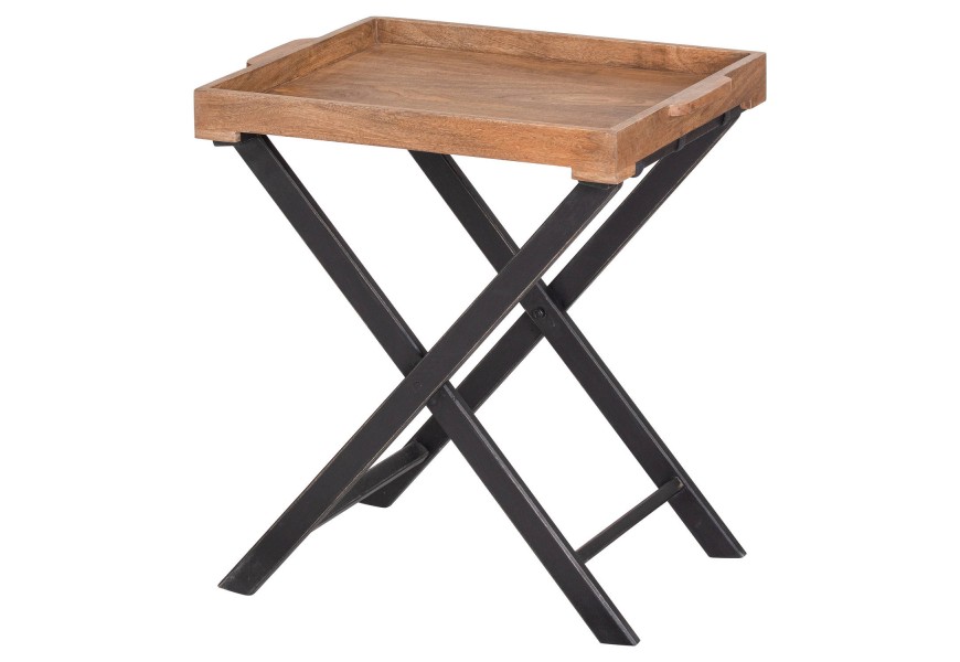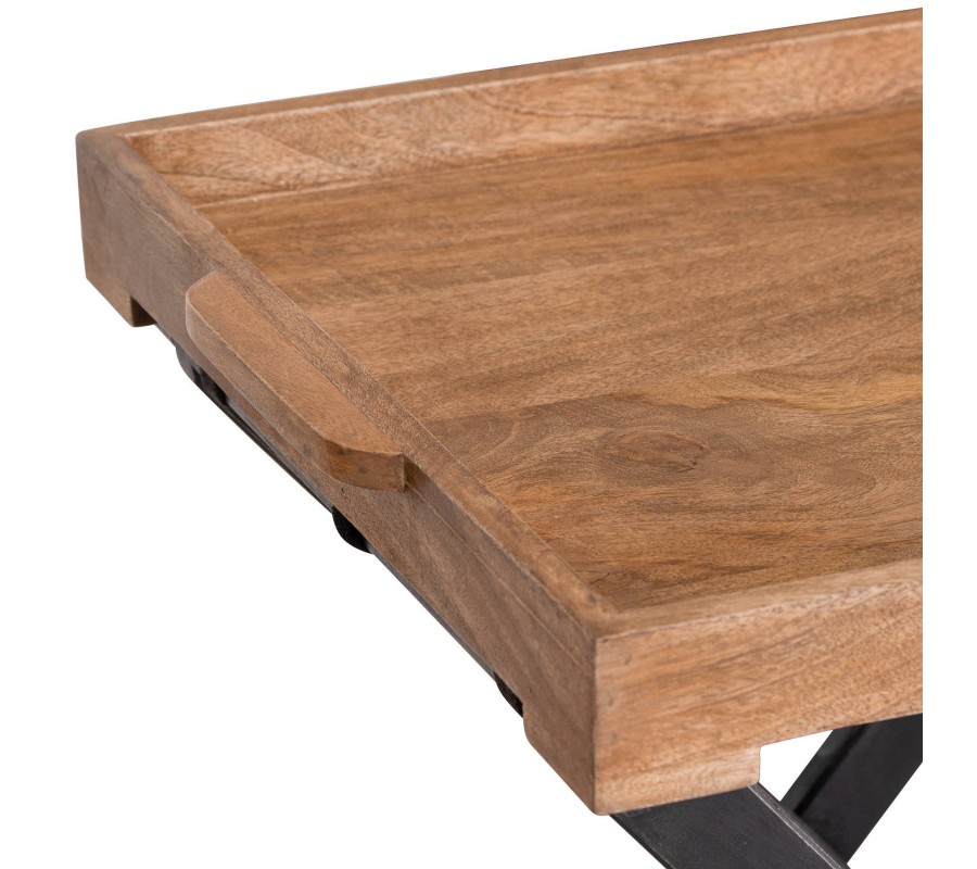 Príjemne minimalistický a zároveň nadčasový príručný stolík Nyakim je ideálnym predstaviteľom industriálneho štýlu v rámci masívneho nábytku. Kombinácia hnedej farby povrchovej dosky z mangového dreva so zvýšenými hranami na okrajoch a čiernej farby prekrížených nôh s povrchovou úpravou pripomínajúcou kov, ktorý je typický pre industriálny štýl, je naozaj dizajnová a jednoducho zladiteľná s viacerými interiérovými prvkami. Príhodná je taktiež možnosť odnímania povrchovej dosky a využívanie v podobe podnosu, napríklad na raňajky do postele.