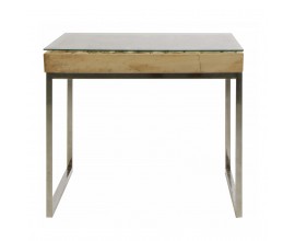 Rustikálny klasický príručný stolík Fontana štvorcového tvaru z masívneho dreva so sklenenou poličkou 60cm