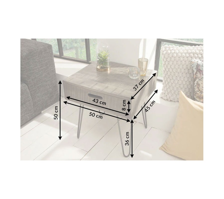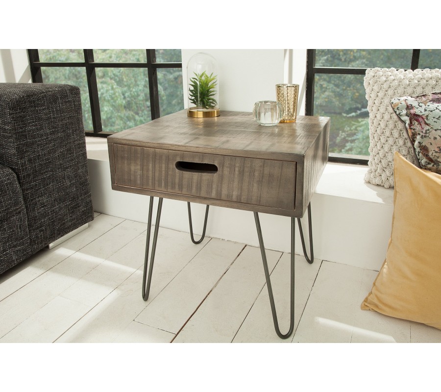 Dizajnový príručný stolík z masívu Leeds 50cm sivý