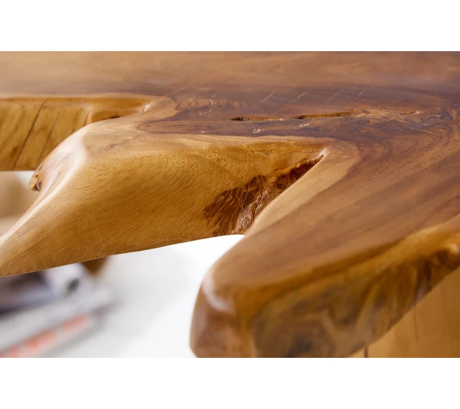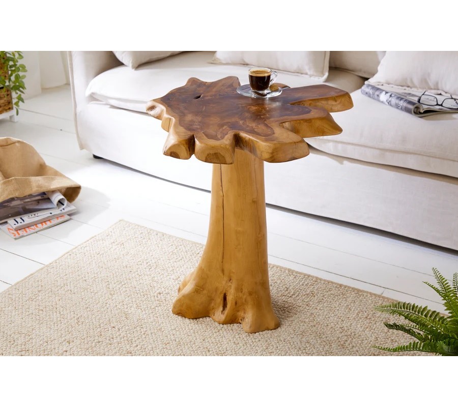 Každý kus je originálom s nepravidelnými krivkami, ktoré dodávajú priestoru hĺbku a autentický charakter. Viditeľné letokruhy, uzly a farebné prechody robia z každého stolíka jedinečný dizajnový prvok.