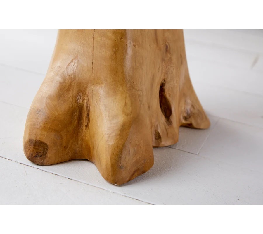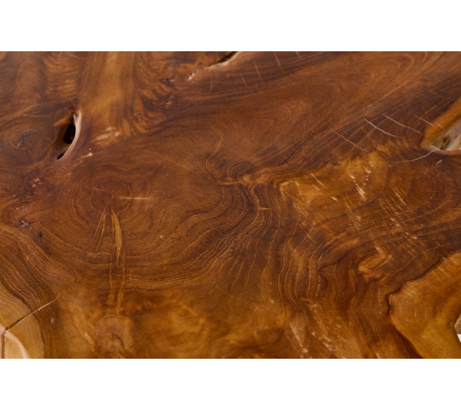 Príručný stolík Root vnesie do interiéru výnimočný kus prírody v umeleckom spracovaní. Je vyrobený z masívneho teakového dreva, ktorého asymetrický a organický tvar si zachováva prirodzený charakter koreňového systému. Povrch je lakovaný, čo zvýrazňuje nádhernú štruktúru dreva s kombináciou tmavšej sýto hnedej až červenej farby vo vnútri a svetlejších žltohnedých tónov po okrajoch.