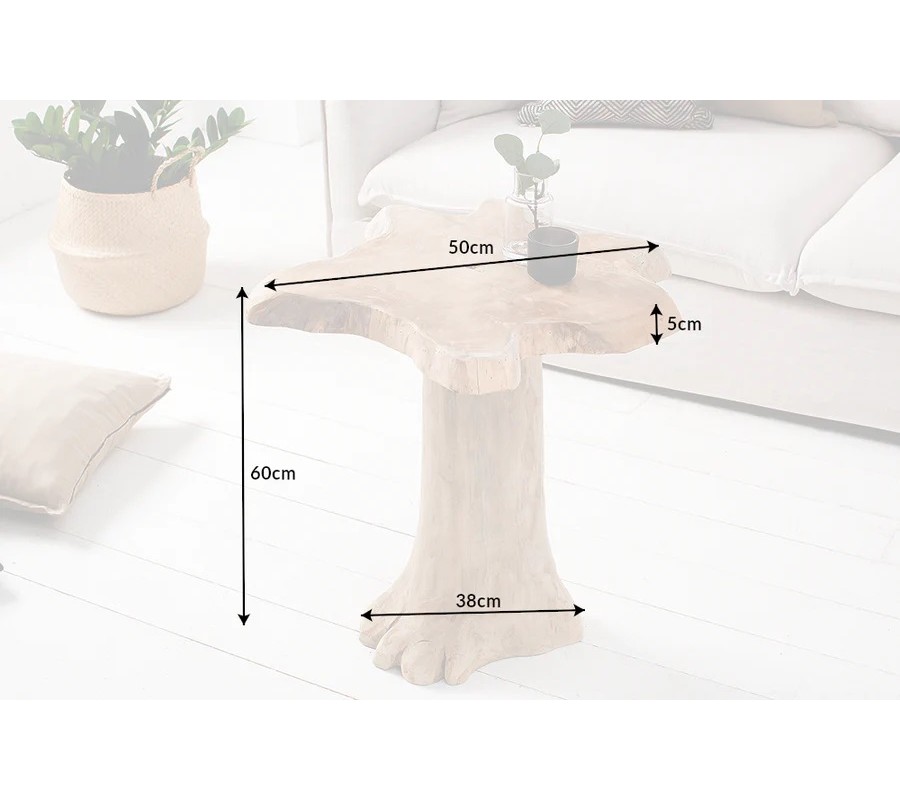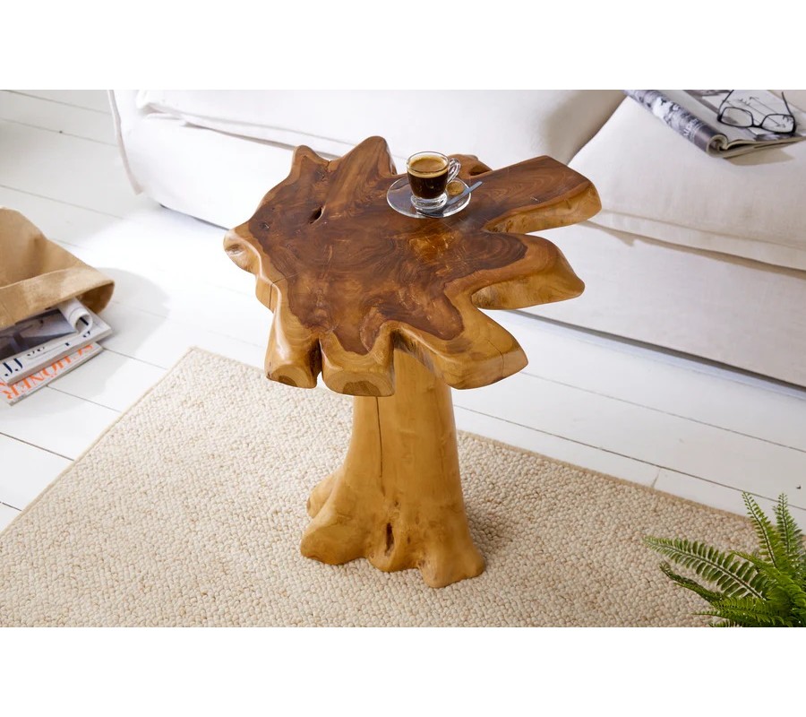 Dizajnový etno hnedý masívny asymetrický príručný stolík Root z teakového dreva 60 cm