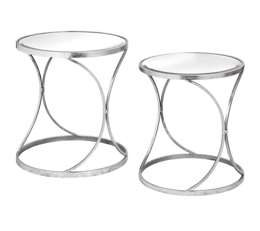 Dizajnový zrkadlový set príručných stolíkov v kombinácii kovových rámov a zrkadlových dosiek je typickým znakom luxusu a elegancie.