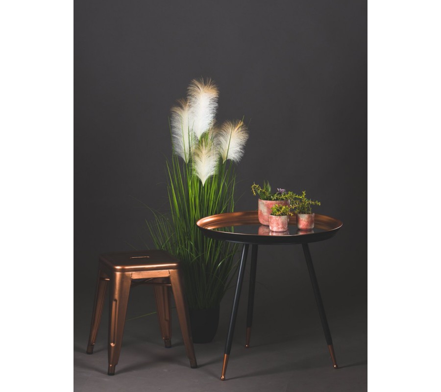 Dizajnový príručný stolík v čierno medenej kombinácií, ktoré sa skvelo dopľňajú. Hodí sa do rôznych interiérov vrátane industriálneho alebo škandinávskeho štýlu. Okrem pekného vizuálneho prejavu ponúka aj dostatok miesta na odkladanie pohárov alebo čokoľvek čo sa rozhodnete si na tento príručný stolík odložiť.