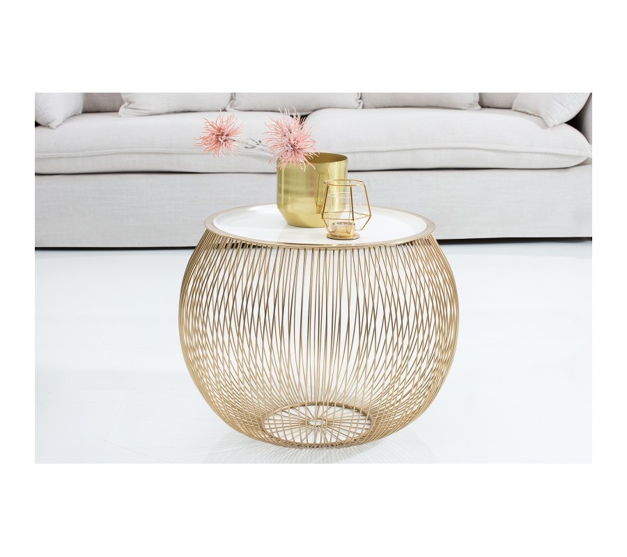 Dizajnový príručný stolík v art-deco štýle je vkusným doplnkom do moderných priestorov. Výrobca okrem štýlového vzhľadu myslel aj na praktickú stránku stolíku. Vrchná doska je odnímateľná a dá sa použiť ako úložná plocha aj mimo stolíku, zatiaľ čo vnútro stolíku viete využiť ako odkladací priestor na napríklad knihy, časopisy a iné. Zlatá farba je vo veľmi príjemnom kontraste s bielou farbou vrchnej dosky.