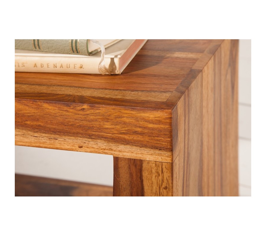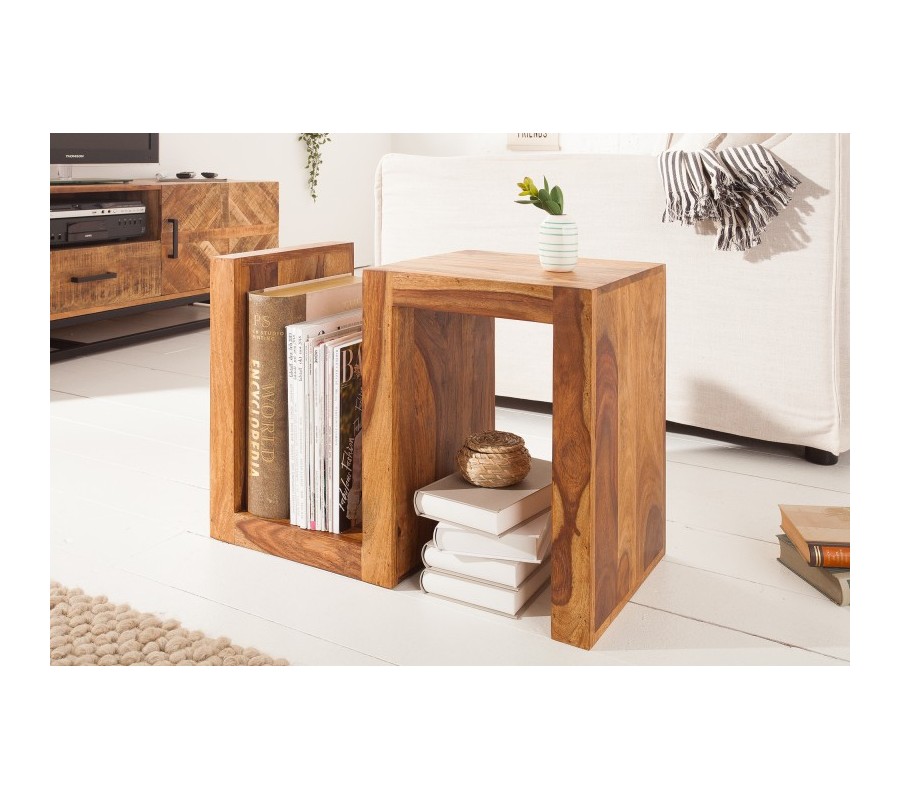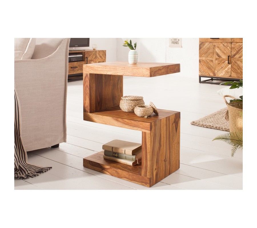 Masívny dizajnový príručný stolík Sefina 60cm sheesham v tvare písmena S