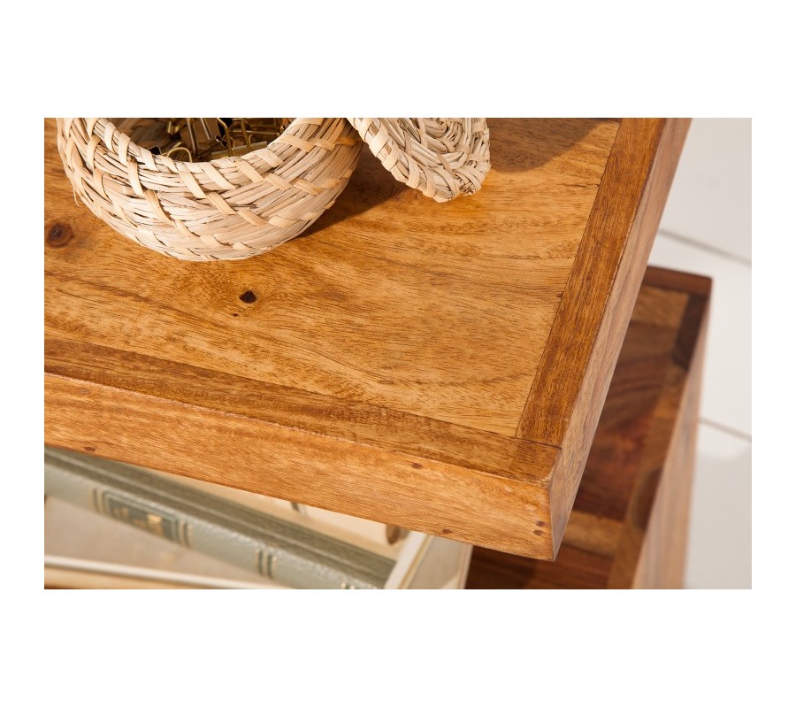 Jedinečný a unikátny príručný stolík Sefina je skvelým kúskom do každého moderného interiéru. Zaujme najmä milovníkov masívneho dreva a minimalistického, praktického dizajnu. Stolík má tvar písmena S, pričom tento tvar vytvára dve praktické poličky na odloženie kníh či dekorácií. Je vyrobený z kvalitného masívneho dreva sheesham a na jeho povrchu možno vidieť zaujímavú kresbu dreva. Stolík Sefina tak nadobúda prírodný vzhľad, ktorý váš interiér zaručene osvieži. Svetlohnedá farba vynikne najmä v bledšie ladených miestnostiach v kombinácii s naturálnymi odtieňmi.