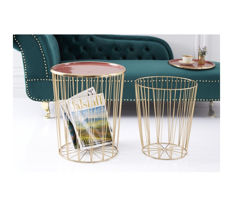 Dizajnová set príručných stolíkov Storage je skvelou voľbou do každého interiéru ladeného v art-deco štýle. Dominuje najmä zaujímavou farebnosťou- vrch stolíkov sa nesie v nadčasovej koralovej a zlatá konštrukcia mu dodáva luxusný dojem. Vkusné oblé tvary pôsobia elegantne a vo vašej obývačke si zaručene nájdu svoje miesto. Set stolíkov Storage je taktiež praktický ako úložný priestor- dovnútra možno vložiť napríklad deku, vankúše či časopisy. Dokonale zapadne najmä do svetlo ladených priestorov, v kombinácii s bielou vyniknú jeho štýlové farby, ale dá sa kombinovať aj s farbami ako zlatá, ružová, zelená či modrá.