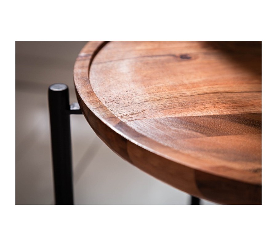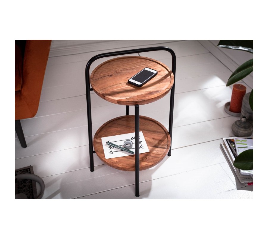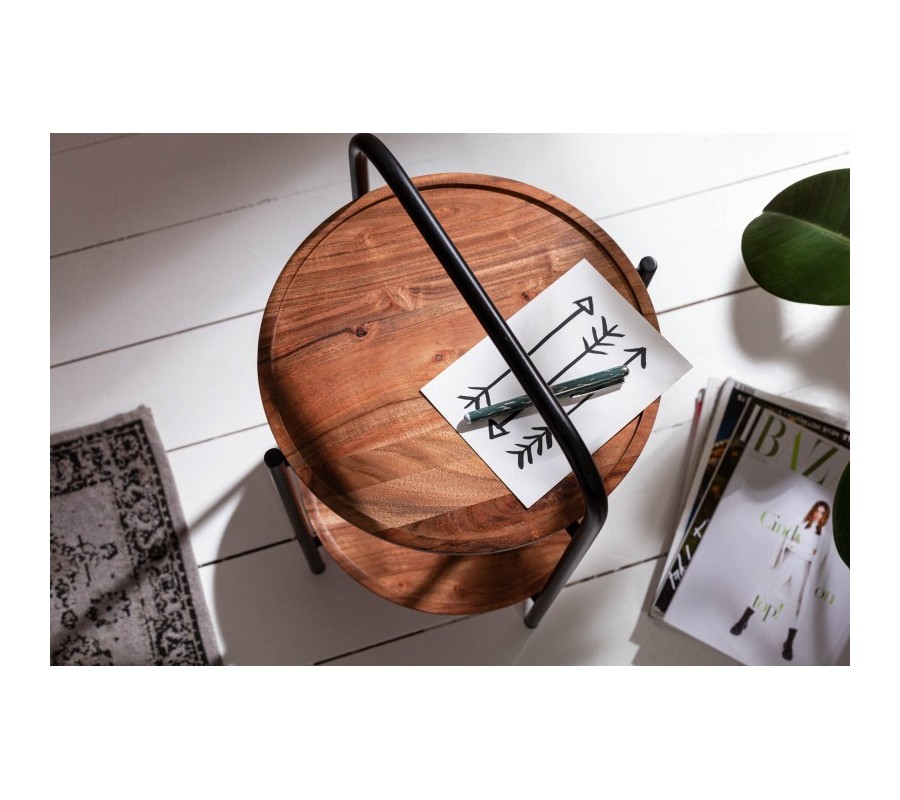 Krása škandinávskej čistoty a prvotriedneho dizajnu sa skrýva v jednoduchosti tvarov a pravosti použitých materiálov stolíka Relik. Prirodzená kresba a štruktúra dreva Akácie na dvoch kruhových odkladacích doskách je doplnená nadčasovou kovovou konštrukciou v čiernej farbe. Nohy stolíka sa plynule spájajú nad vrchnou odkladacou doskou a slúžia ako praktický úchyt. Štýlový úchyt oceníte hlavne počas jednoduchého presúvania stolíka k obľúbenému kreslu či spolu s drobným občerstvením k posedeniu na balkóne a terase. Nadčasový dizajn je kombinovateľný s akýmkoľvek nábytkom v modernom duchu, krásne vynikne v kombinácii s masívnym drevom či kovom v čiernych a strieborných tónoch. Stolík je vďaka svojmu jednoduchému presúvaniu vhodné umiestniť vždy práve tam, kde ho využívate. Vďaka čistým líniám škandinávskeho dizajnu sa ľahko kombinuje a zapadne do akejkoľvek miestnosti vášho interiéru.