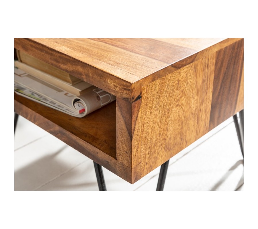 Industriálny masívny príručný stolík Sheesham z palisandrového dreva s kovovými nohami 45cm