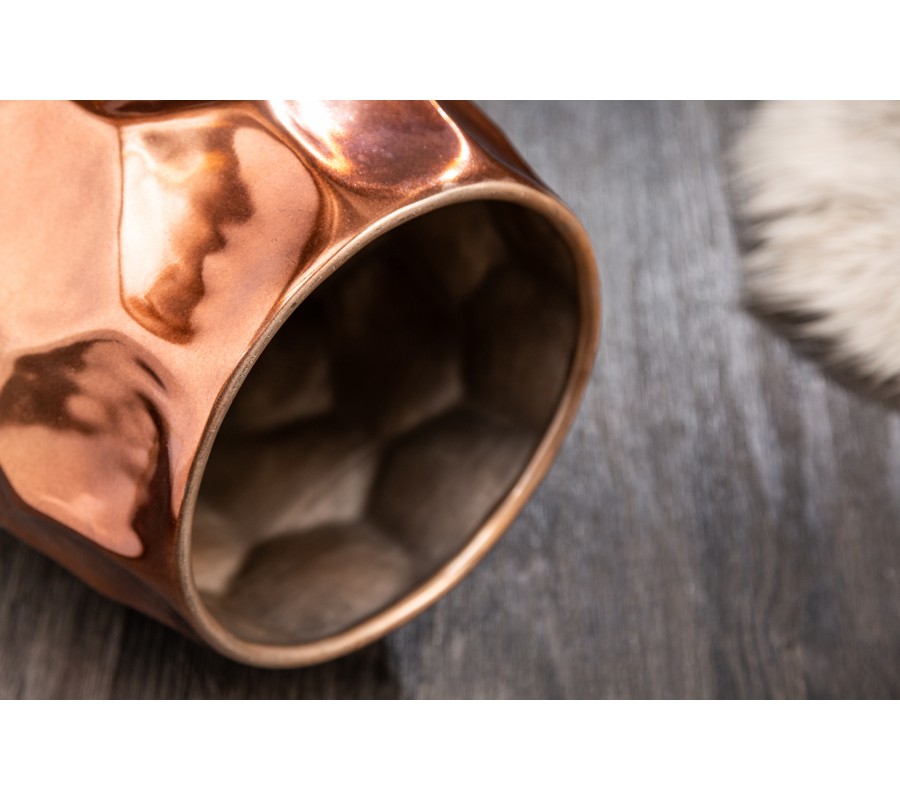 Jedinečný organický tvar príručného stolíka Siliguri sa stane šperkom každého interiéru. Dekoratívny povrch s kladivkovým efektom je zvýraznený jasným leskom medeného povrchu. Príručný stolík môžete použiť ako doplnkový odkladací priestor vo vašej obývačke, predsieni či spálni, dokonale vynikne v kombinácii s modernými, orientálnymi prvkami a nestratí sa ani v spoločnosti luxusných Art-deco doplnkov. Okrem odkladacej plochy v podobe stolíka môžete produkt Siliguri otočiť a využívať ako nádobu na obľúbenú deku či ako vázu na kvetinové dekorácie. Pre vytvorenie štýlovo konzistentného zátišia v podobe odkladacieho priestoru vo vašej domácnosti odporúčame príručný stolík Siliguri kombinovať s ďalšími prvkami našej rovnomennej kolekcie.