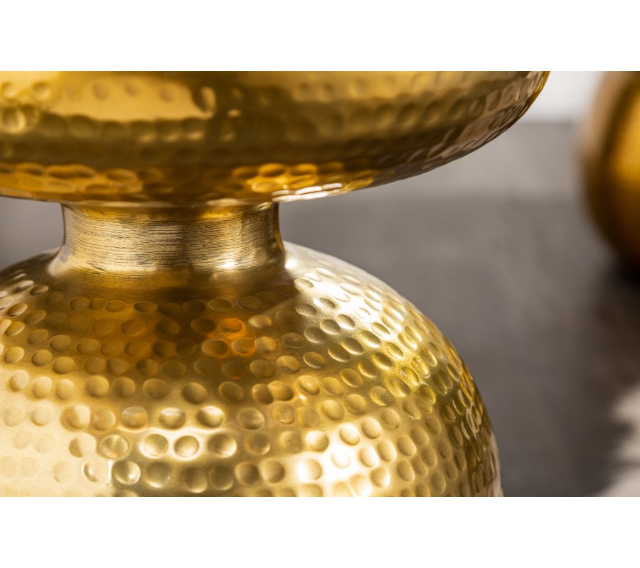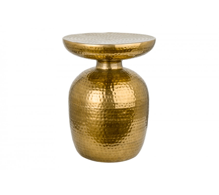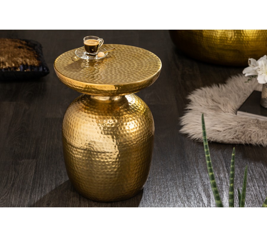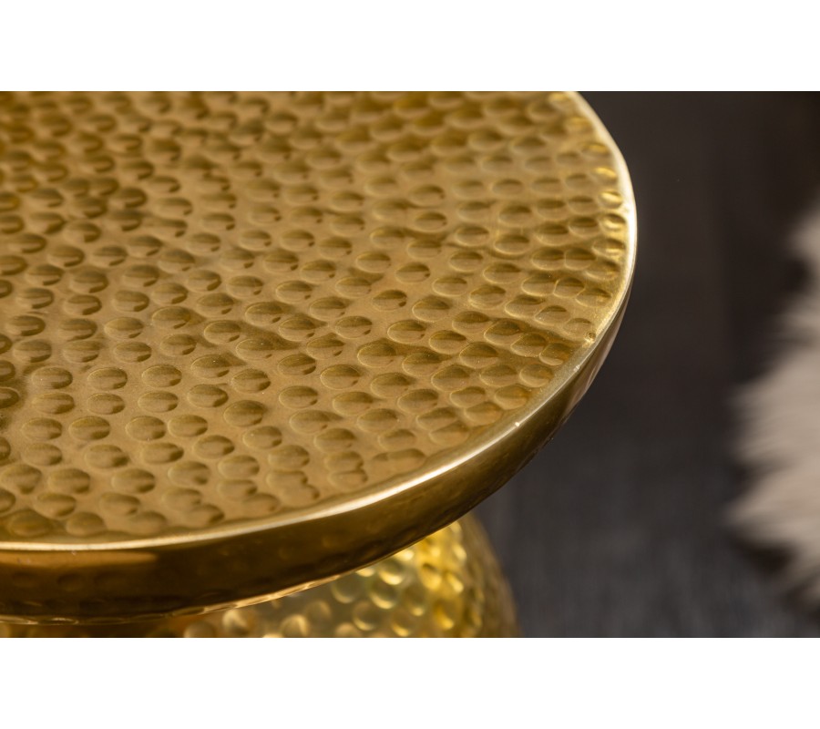 Orientálny okrúhly príručný stolík Siliguri v zlatom prevedení s kladivkovým povrchom 36cm