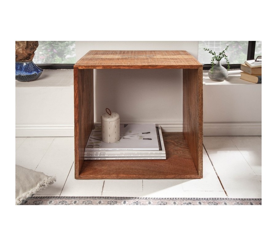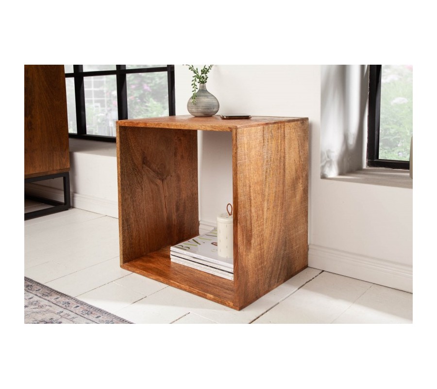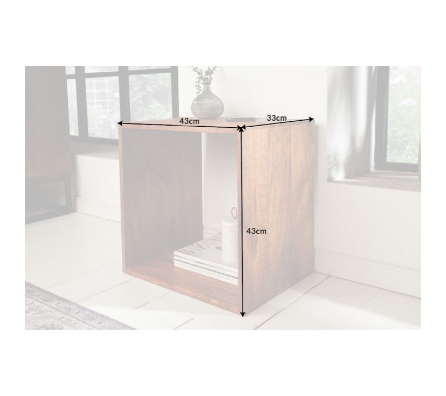 Industriálny príručný stolík Makassar z masívu hnedej farby štvorcového tvaru 43cm