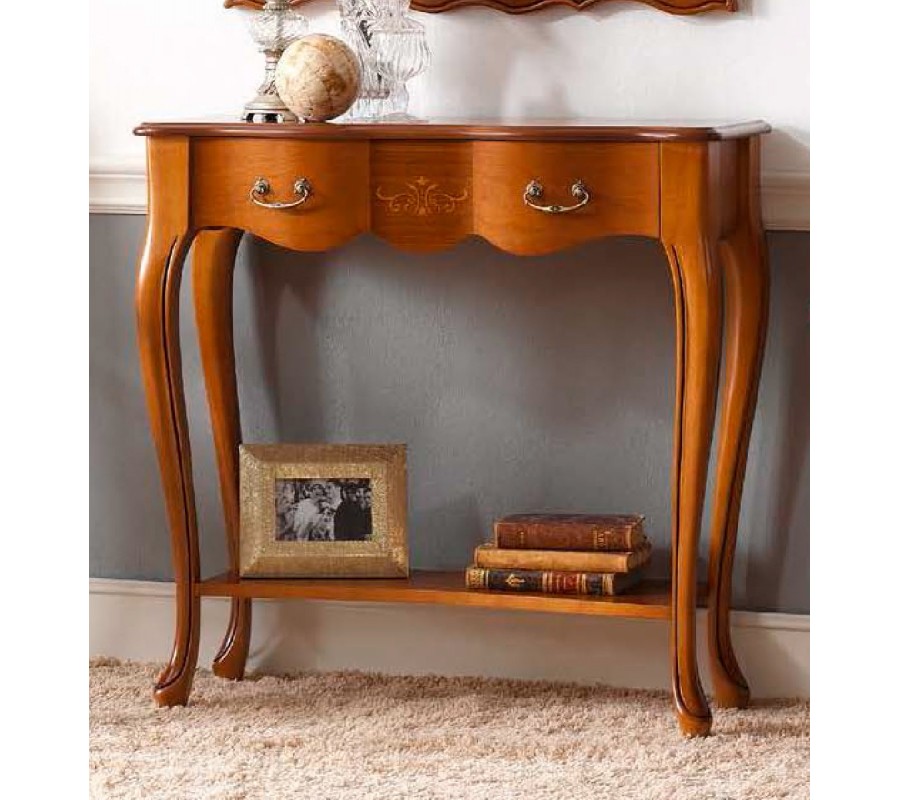 V prevedení jedinečnej konzoly Castilla v rustikálnom štýle dominujú nežné línie inšpirované prírodou, ktoré v kombinácii s precízne vyrezávanými zdobiacimi prvkami zdobili i honosné barokové nábytky v dávnych storočiach. Vyrezávané nožičky konzoly inšpirované zvieracími labkami sú spoločným znakom celej kolekcie nábytku Castilla. konzola je dômyselne vyrobená z kvalitného masívneho dreva a disponuje jednou praktickou a priestrannou zásuvkou. Konzola Castilla nadobúda exkluzívny vzhľad najmä vďaka výzdobe marketériou - precíznym vykladaním ozdobných drevených prvkov v odlišnej farbe či odtieni. Finálny produkt je doplnený praktickými kovovými rukoväťami.