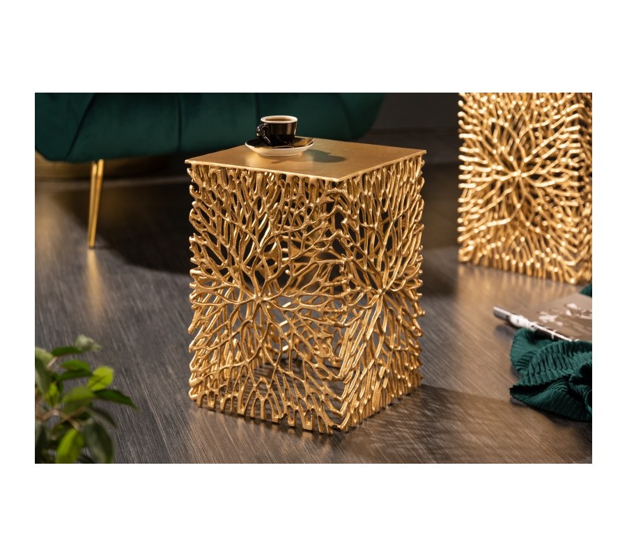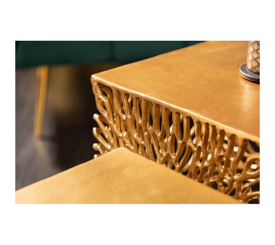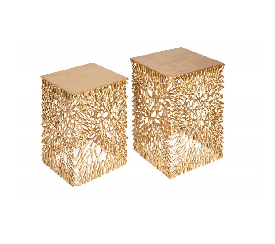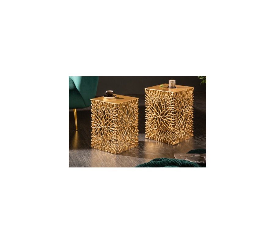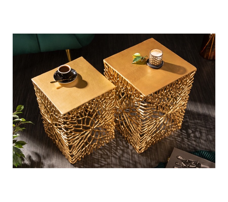 Art-deco štýlový set dvoch štvorcových príručných stolíkov Hoja v zlatej farbe