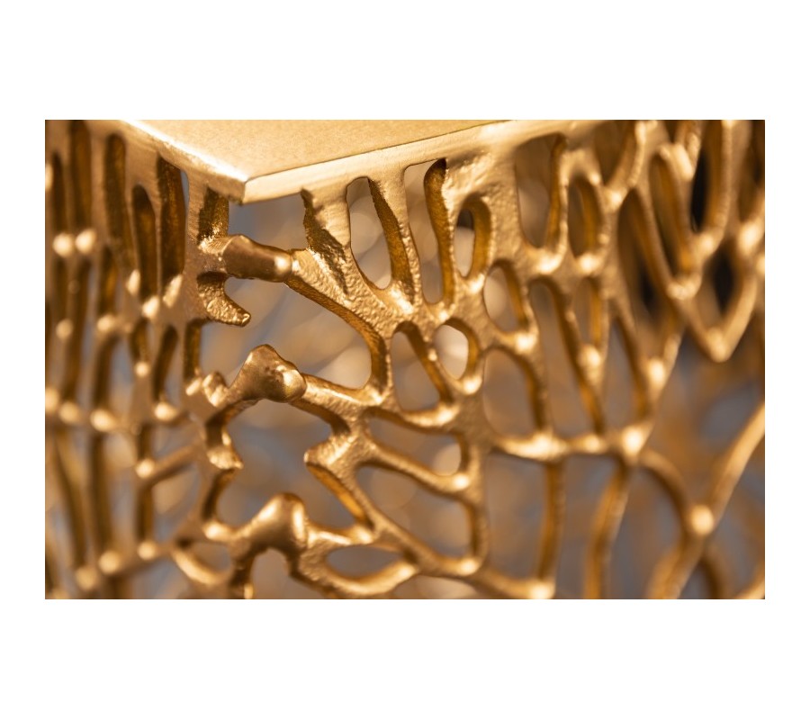 Štýlový art-deco set dvoch príručných stolíkov Hoja rozžiari každú modernú obývačku. Set sa nesie v luxusnej zlatej farbe, pričom kovová konštrukcia je tvorená zaujímavým sieťovitým spôsobom a vznikajú tak zaujímavé abstraktné obrazce. Vďaka kovovej zliatine sú stolíky pevnejšie a stabilnejšie. Vášmu interiéru tento set dodá luxusný nádych a krásne vynikne v tmavých i svetlejších priestoroch. Set stolíkov Hoja sa dá výborne kombinovať s tmavšími výraznými farbami ako je zelená, modrá či červená, a dá sa vynikajúco doplniť rôznymi dekoráciami v art-deco štýle. Vďaka zlatej farbe sa výborne hodia do luxusných priestorov a v kombinácii s tmavým nábytkom vytvoria nezameniteľný luxusný kontrast.