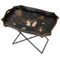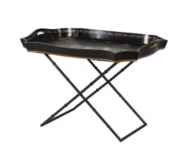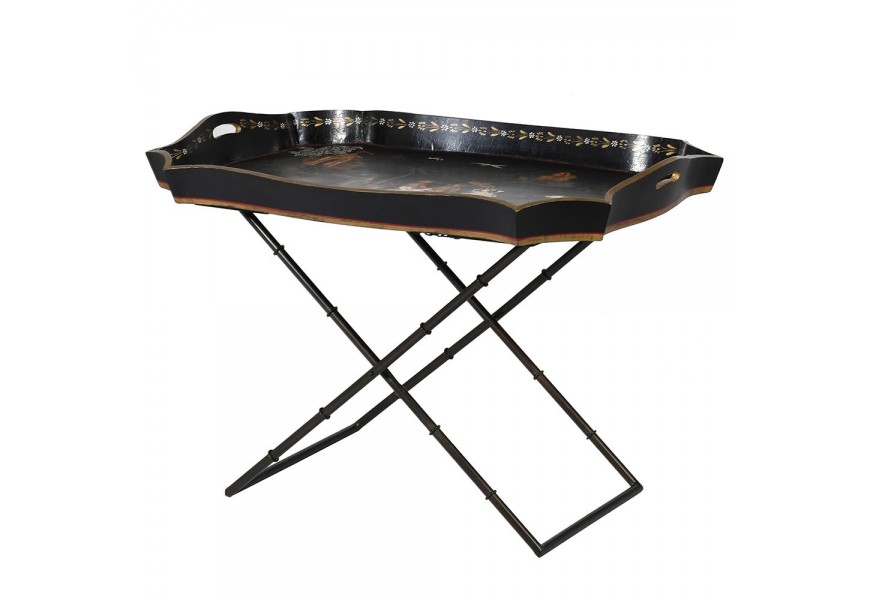 Orientálny odkladací stolík Chinia s čínskym motívom a s podnosom v čiernej farbe 85 cm
