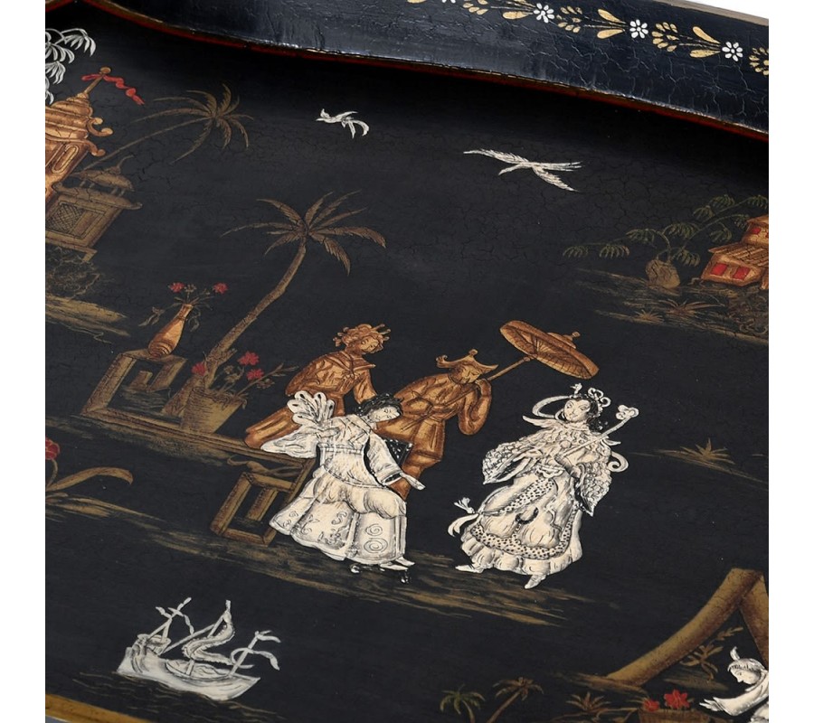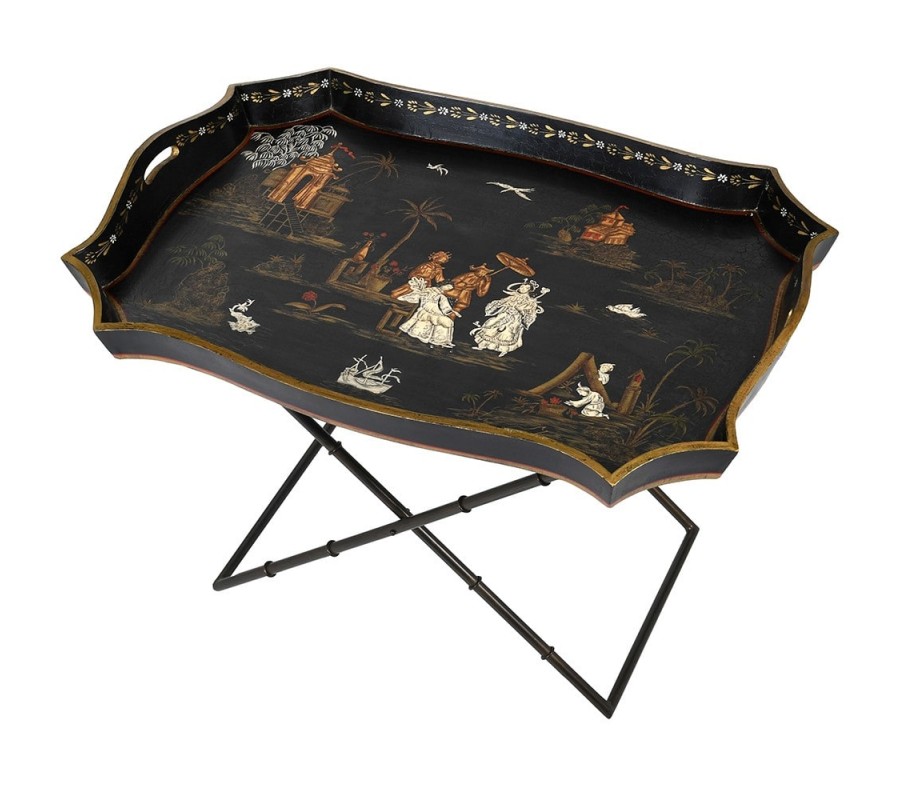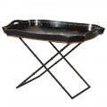 Orientálny dekoračný stolík je nadčasovým kúskom nábytku, ktorý by nemal chýbať v obývačke každého, kto miluje štýl ďalekého východu. Príručný stolík vnesie do interiéru atmosféru ďalekého východu a Ázie. Stolík sa skladá z čiernych kovových nôh, ktoré sú v tvare X a z hornej stolovej časti z mangového dreva, ktorý slúži ako podnos. Tvar čierneho podnosu je tvarovaný v orientálnom štýle a nachádzajú sa na nej čínske dekoračné motívy, ktoré dodávajú stolíku čaro. Stolík sa hodí do interiérov, v ktorých prevláda čínsky minimalizmus. Interiér v čínskom štýle je farebne bohatý, využíva červenú, námornícku modrú, lotosovo žltú, lososovoružovú a zlatú farbu, tým pádom odporúčame stolík kombinovať s týmito zaujímavými farbami. Vhodné sú zlaté doplnky, hodvábne koberce, gobelíny a ručne maľovaná keramika. Stolík odporúčame kombinovať s nábytkami v podobnom orientálnom štýle.