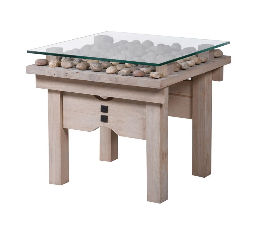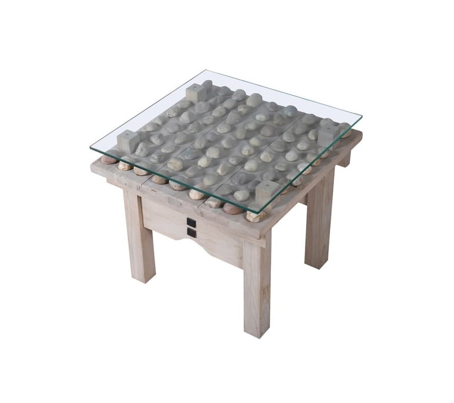 Jedinečný a nadčasový príručný stolík z rady Piedroja disponuje naozaj vkusným prevedením. Veľmi príjemným dizajnovým prvkom tohoto orientálneho kúsku je presklená povrchová doska, pod ktorou sa nachádza doska zdobená riečnymi kameňmi, táto do vášho domova vnesie harmóniu a dotyk prírody. Stolík stojí na masívnych nohách v naturálnej farbe gumovníkového dreva a odporúčame ho kombinovať najmä s orientálnymi doplnkami a dekoráciami z prírodnín, rovnako tak i živou zeleňou.